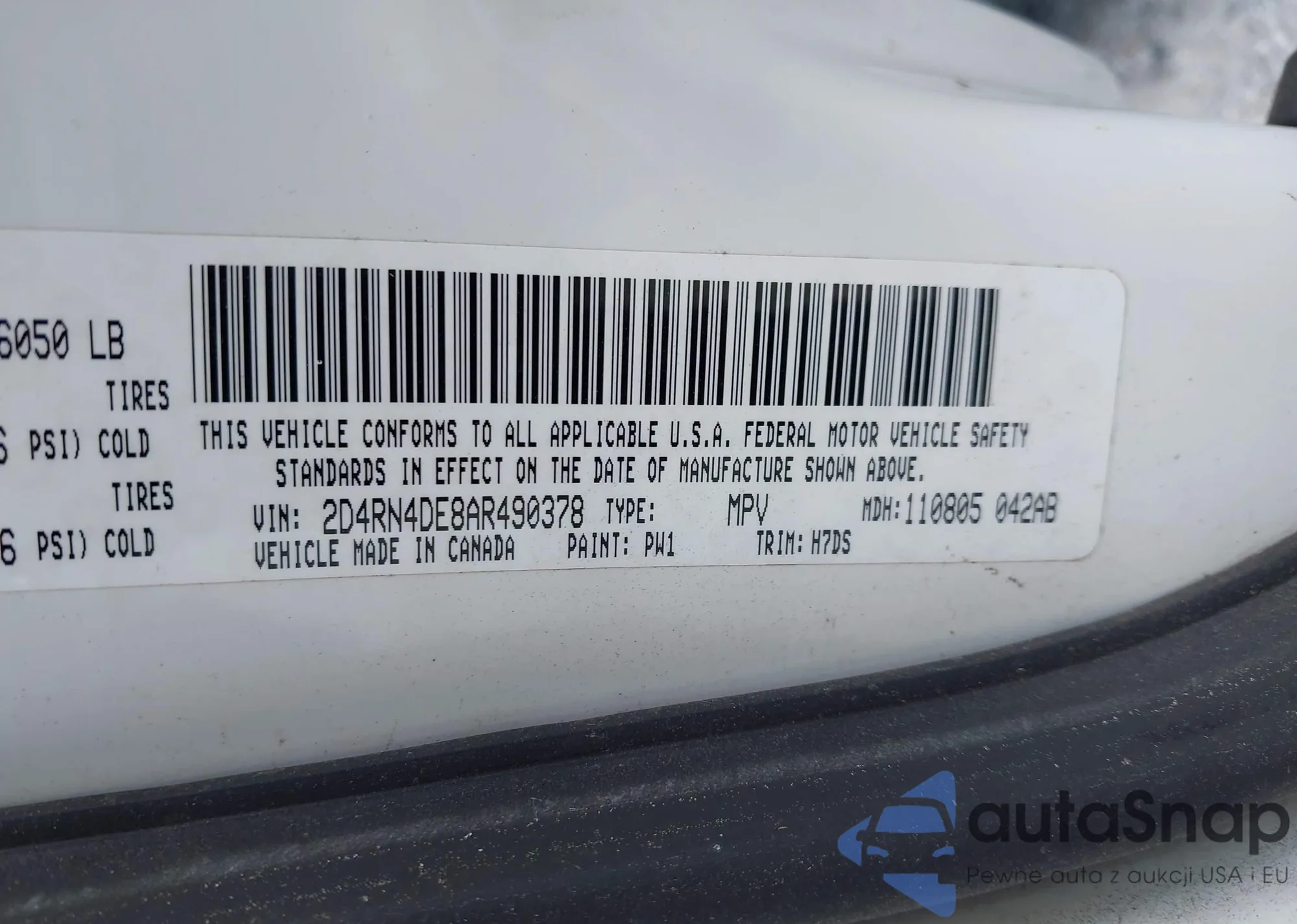 VIN: 2D4RN4DE8AR490378