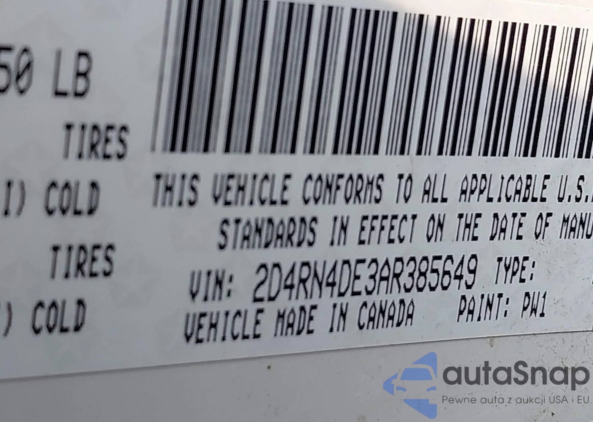 VIN: 2D4RN4DE3AR385649