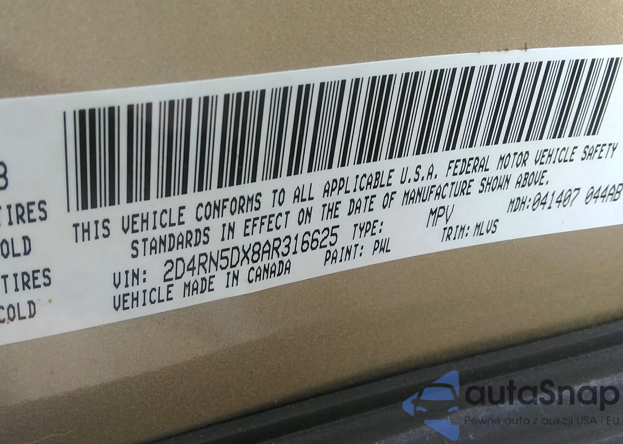 VIN: 2D4RN5DX8AR316625