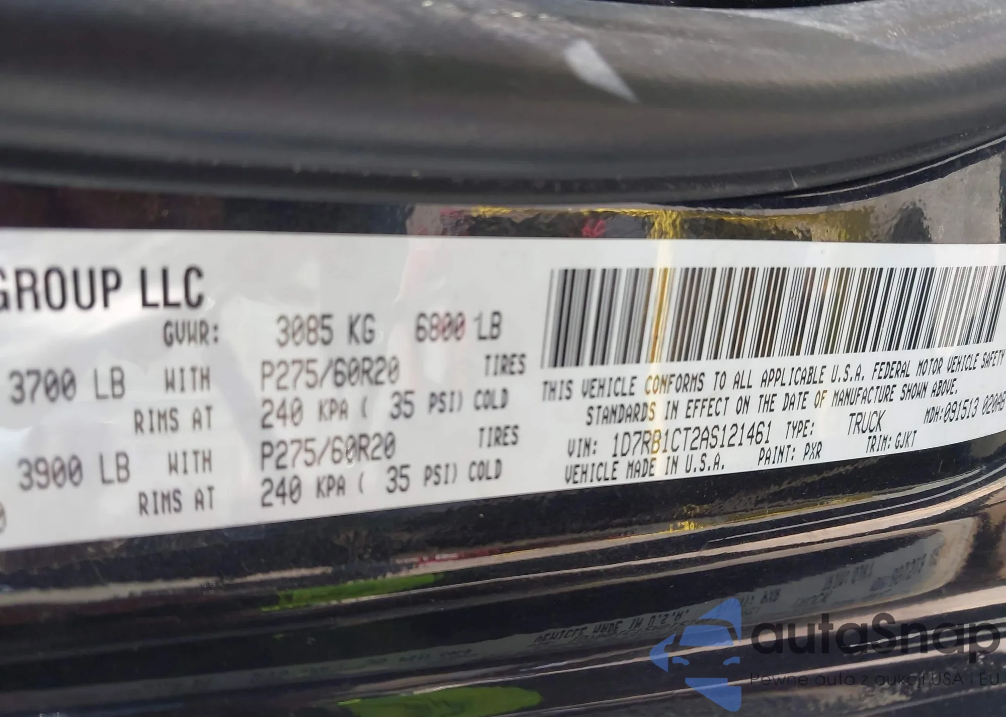 • VIN: 1D7RB1CT2AS121461