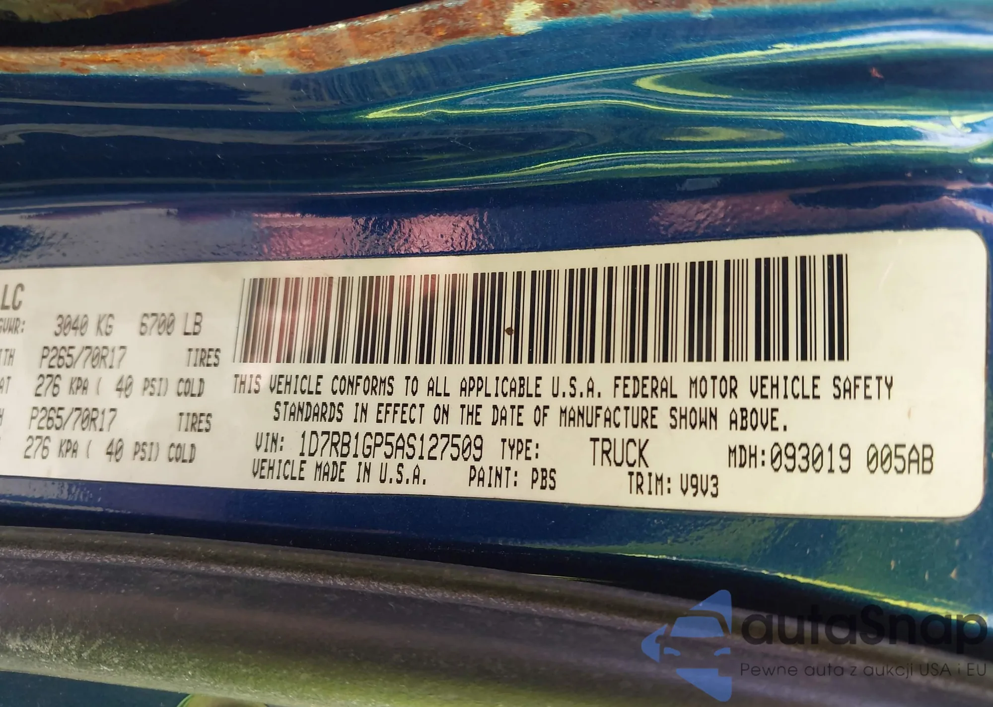 VIN: 1D7RB1GP5AS127509