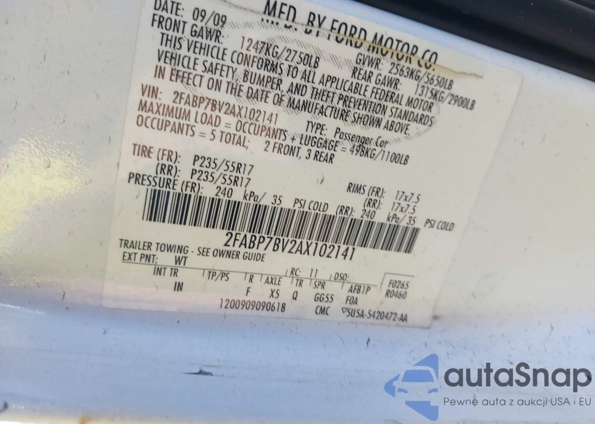 • VIN: 2FABP7BV2AX102141