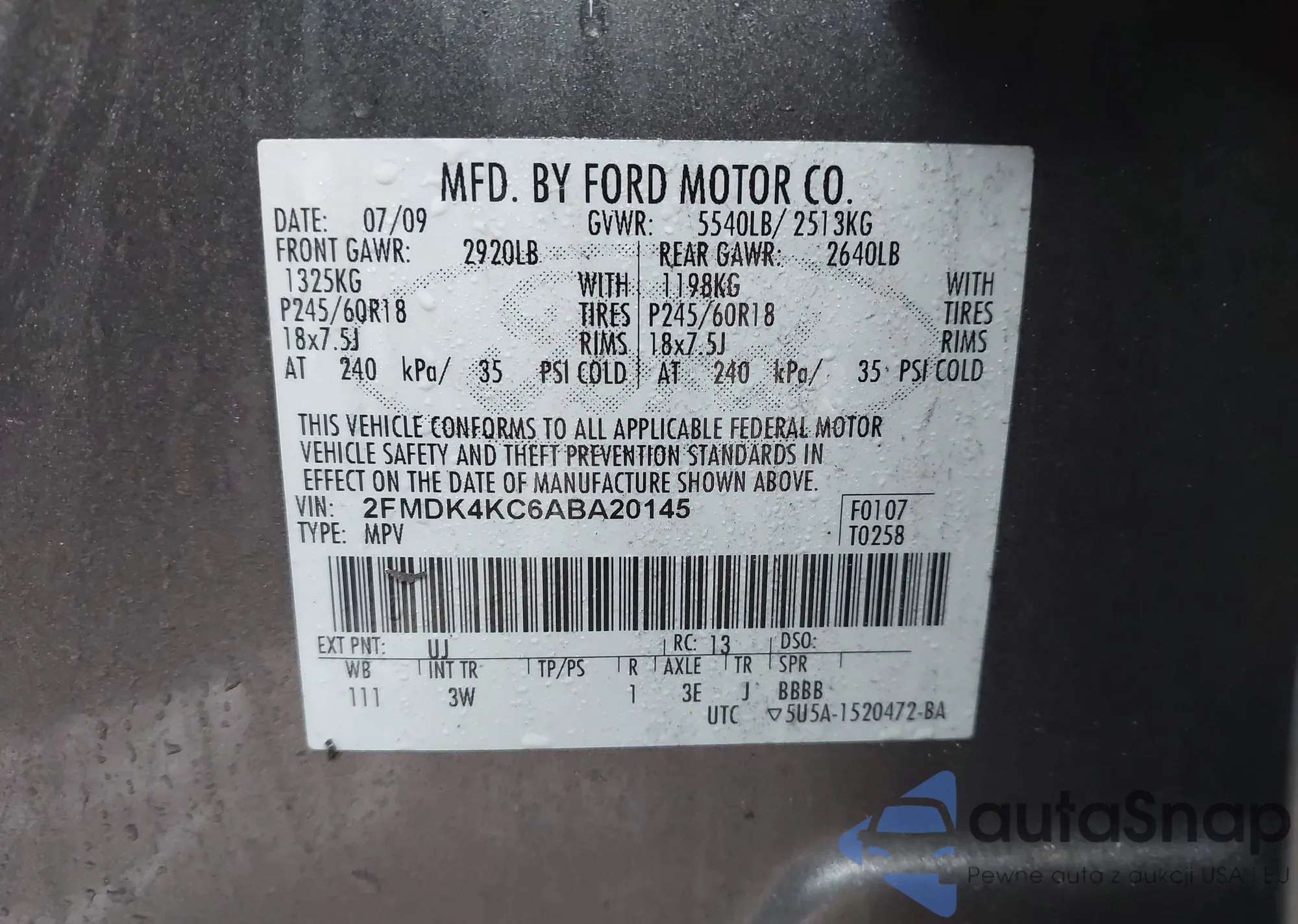 VIN: 2FMDK4KC6ABA20145