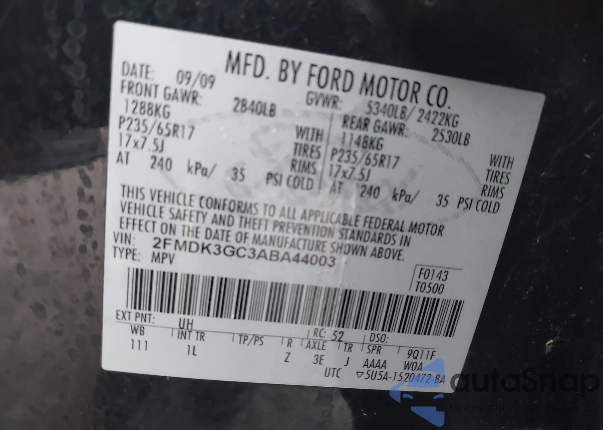 VIN: 2FMDK3GC3ABA44003