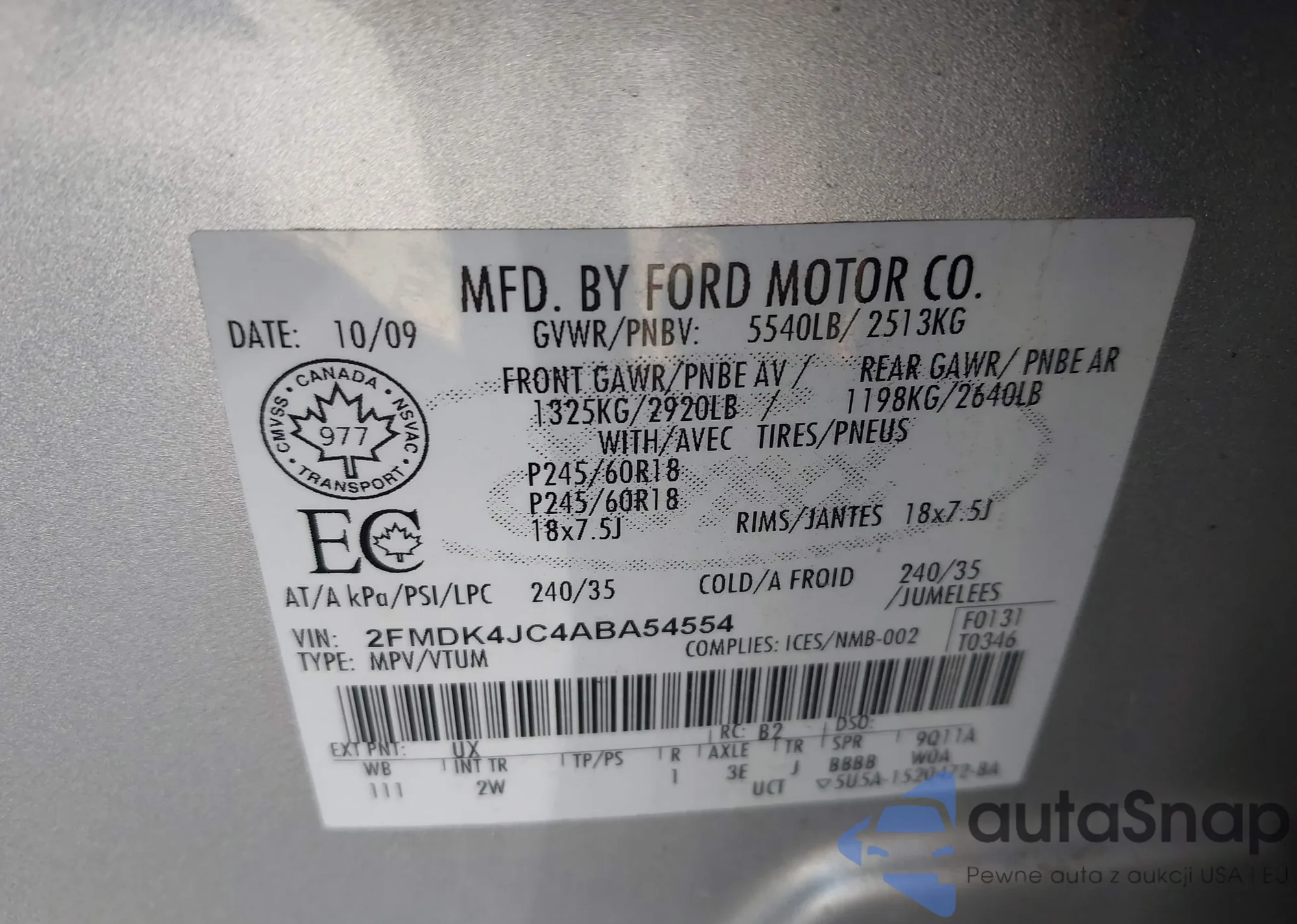 VIN: 2FMDK4JC4ABA54554