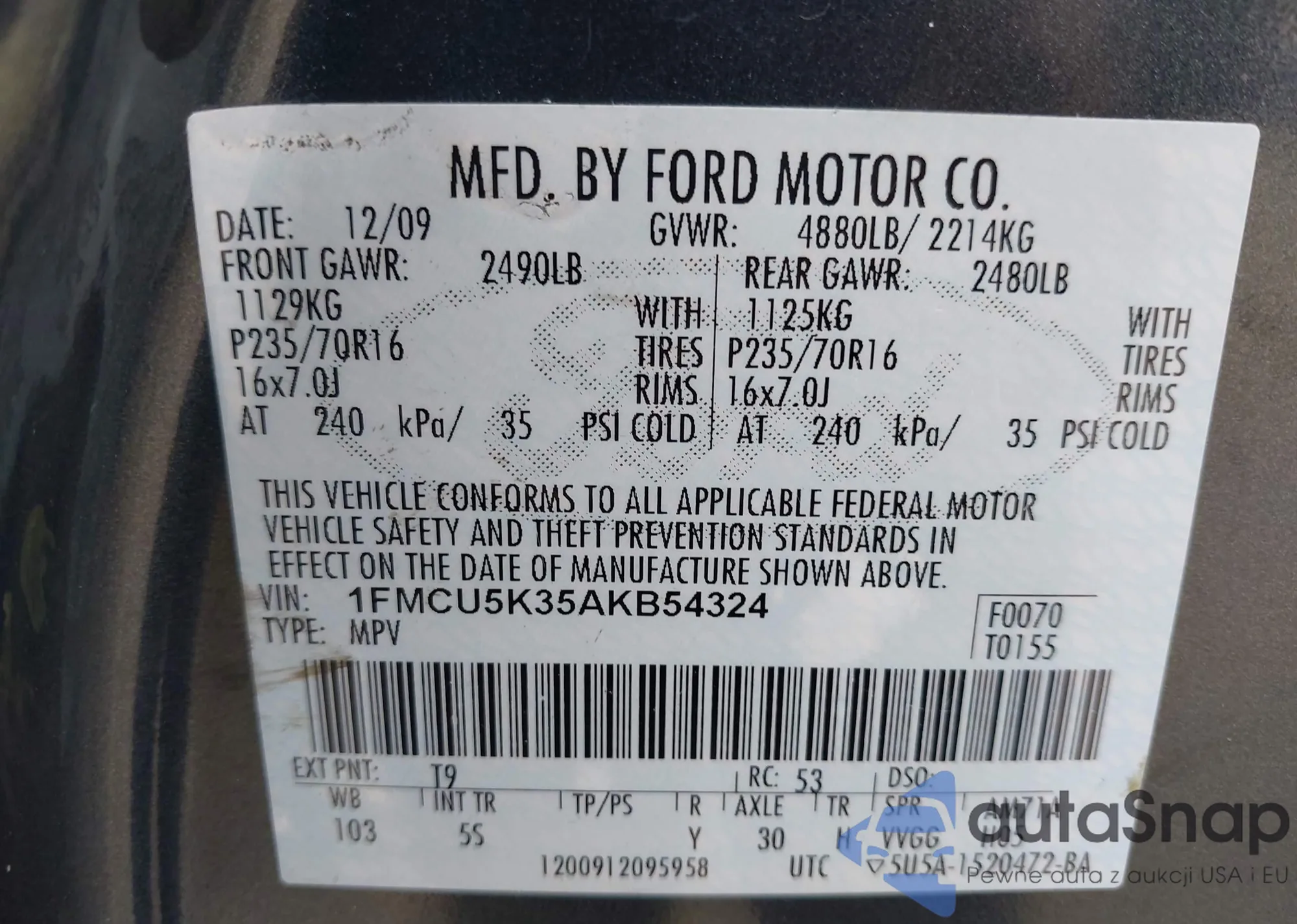 VIN: 1FMCU5K35AKB54324
