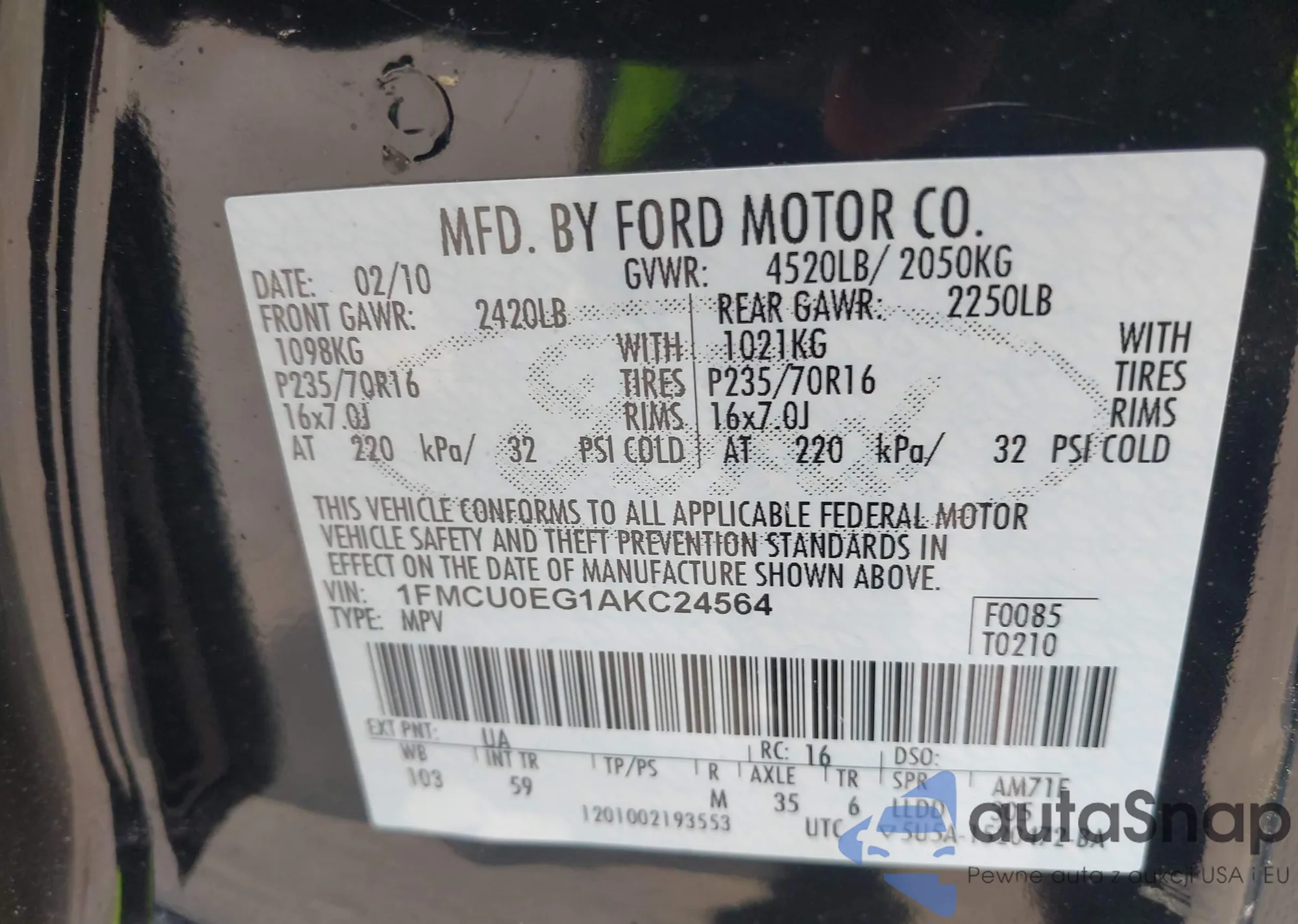 VIN: 1FMCU0EG1AKC24564