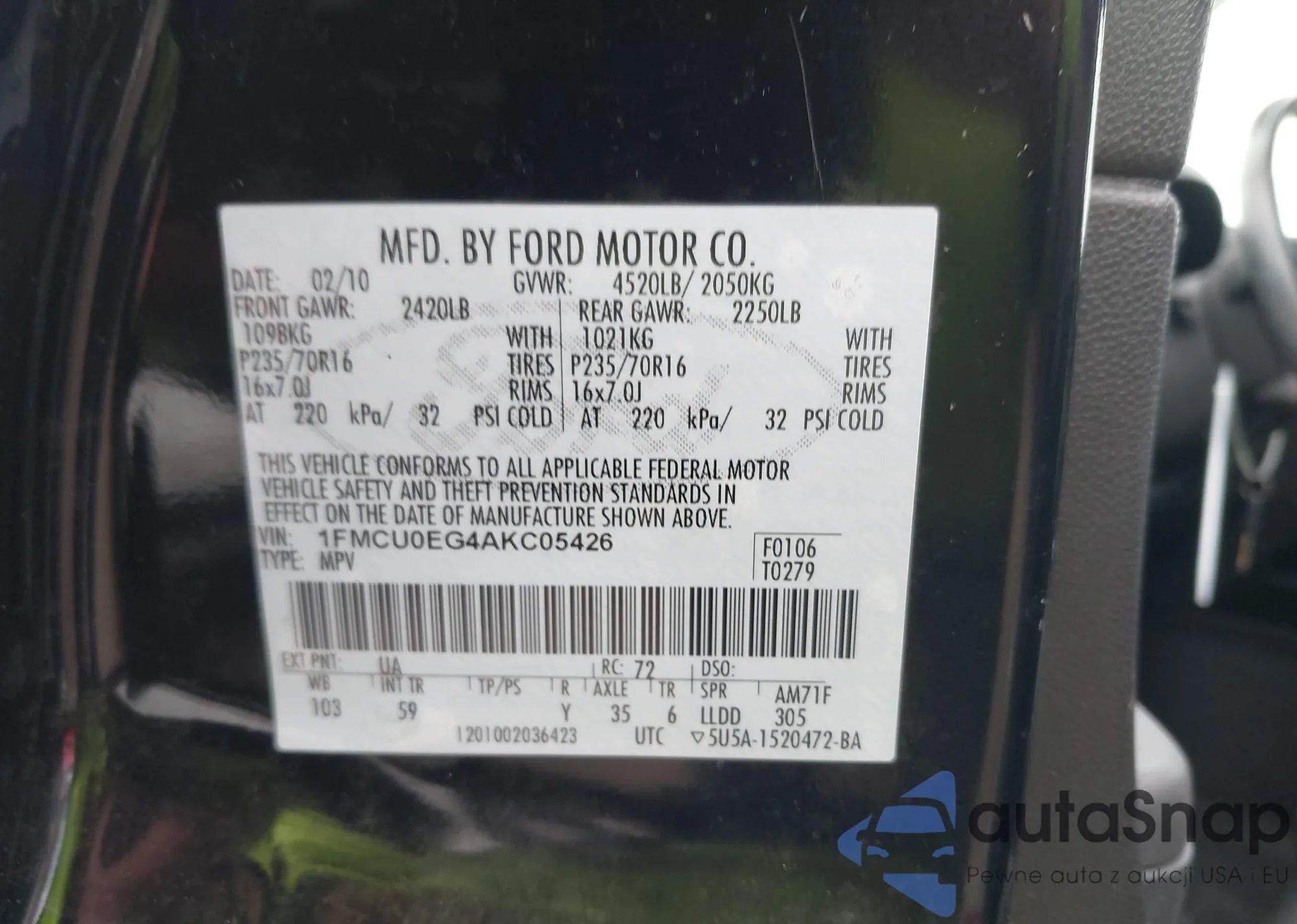 VIN: 1FMCU0EG4AKC05426