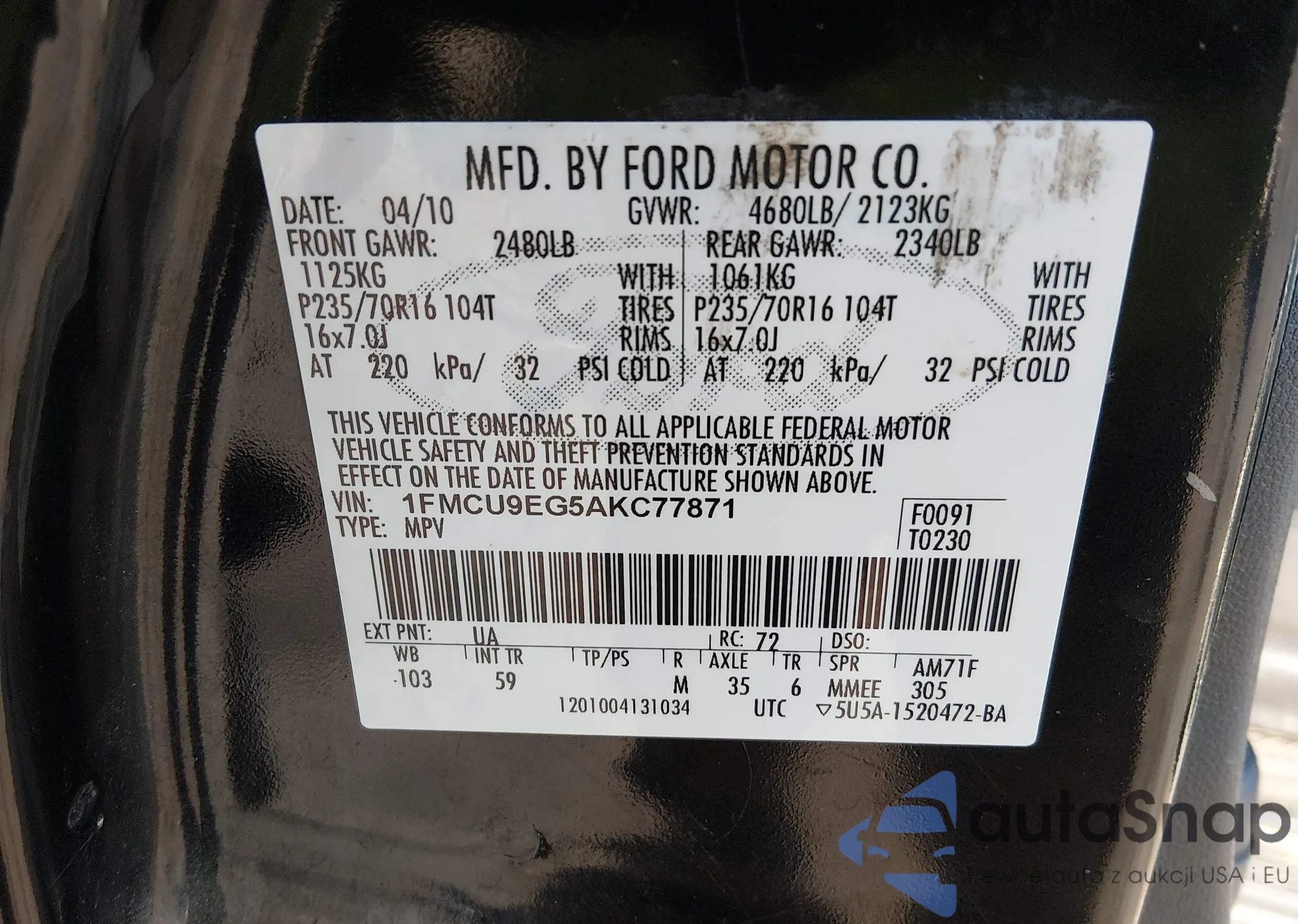VIN: 1FMCU9EG5AKC77871