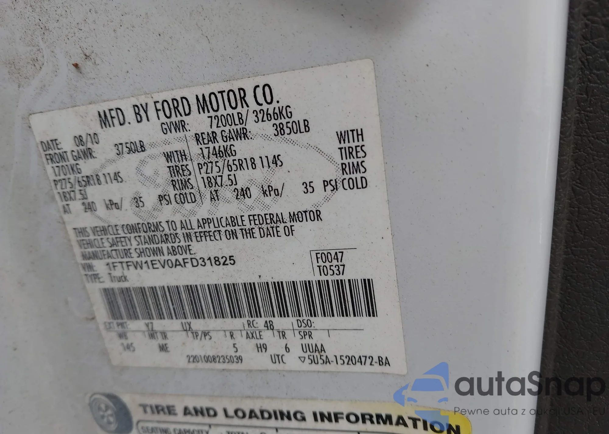 VIN: 1FTFW1EV0AFD31825