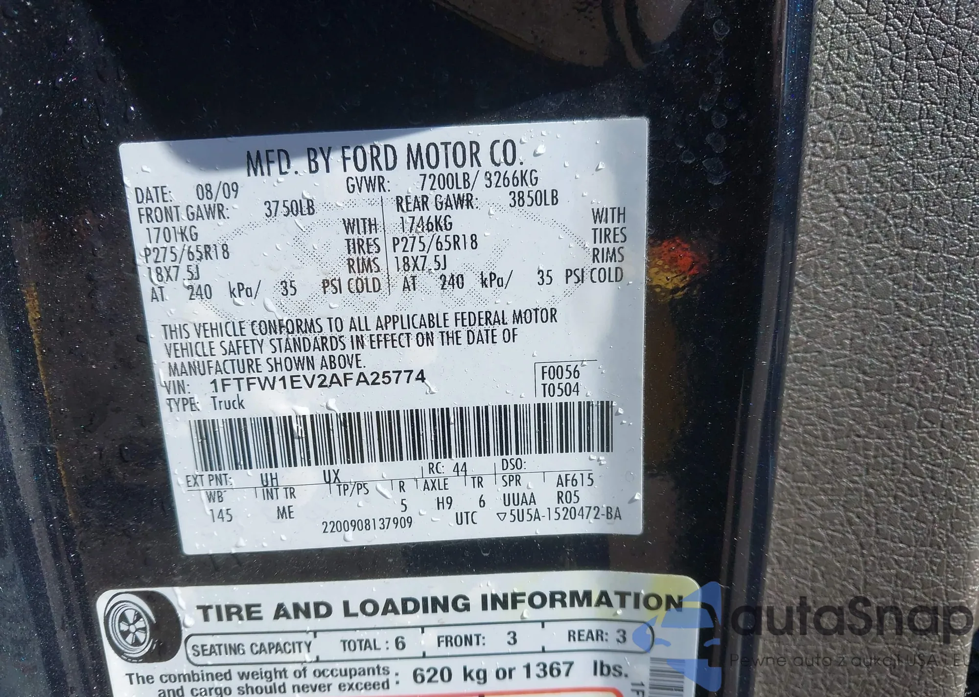 Автомобиль Ford F-150 2010 (VIN 1FTFW1EV2AFA25774) ранее не участвовал в торгах. Документы чистые, пробег соответствует или ниже среднего по рынку. Продаётся страховой компанией — рекомендуем покупку. Доставка в порт займет около 6–8 недель.