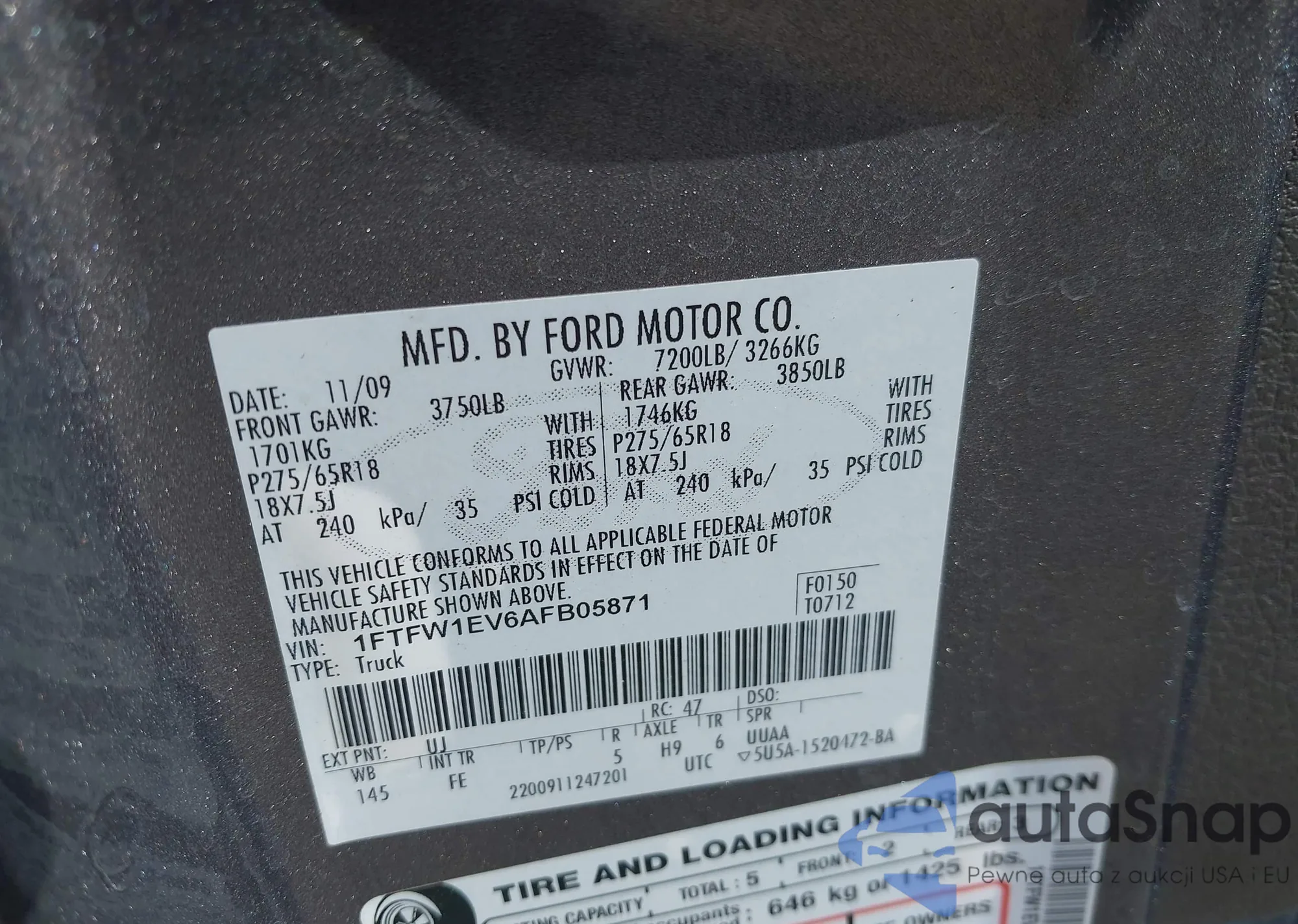 VIN: 1FTFW1EV6AFB05871