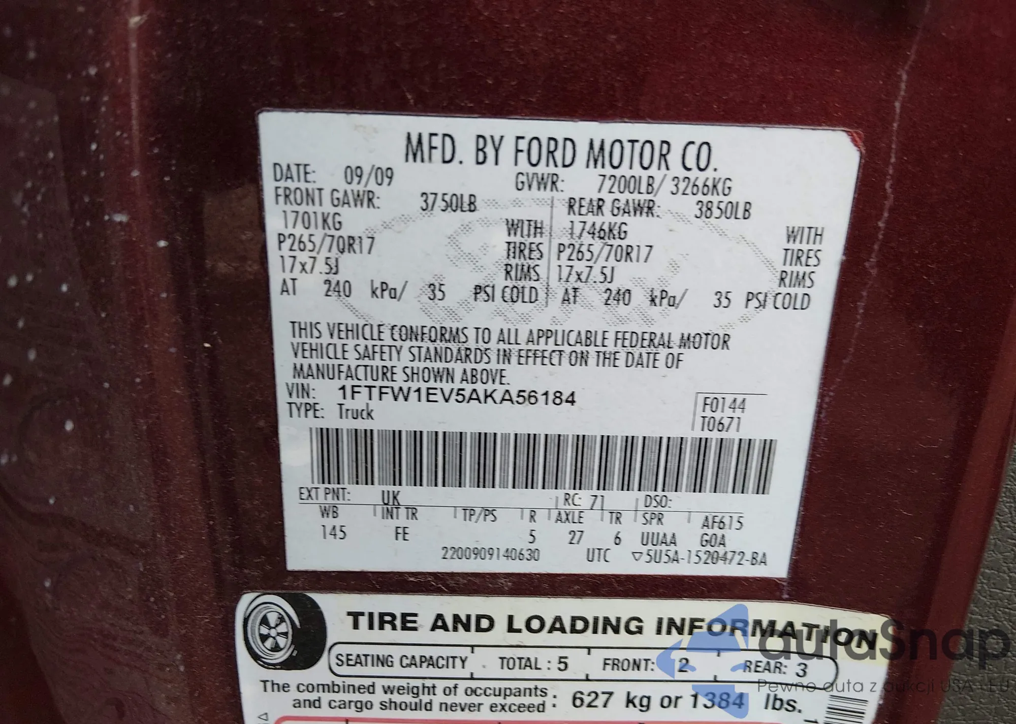 Автомобиль Ford F-150 2010 (VIN 1FTFW1EV5AKA56184) ранее не участвовал в торгах. Документы чистые, пробег соответствует или ниже среднего по рынку. Продаётся страховой компанией — рекомендуем покупку. Доставка в порт займет около 6–8 недель.