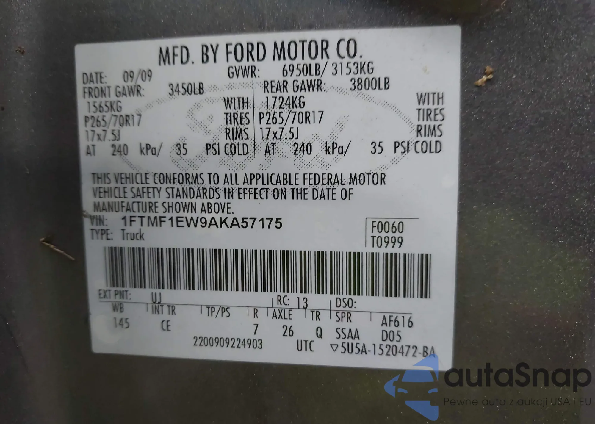 VIN: 1FTMF1EW9AKA57175