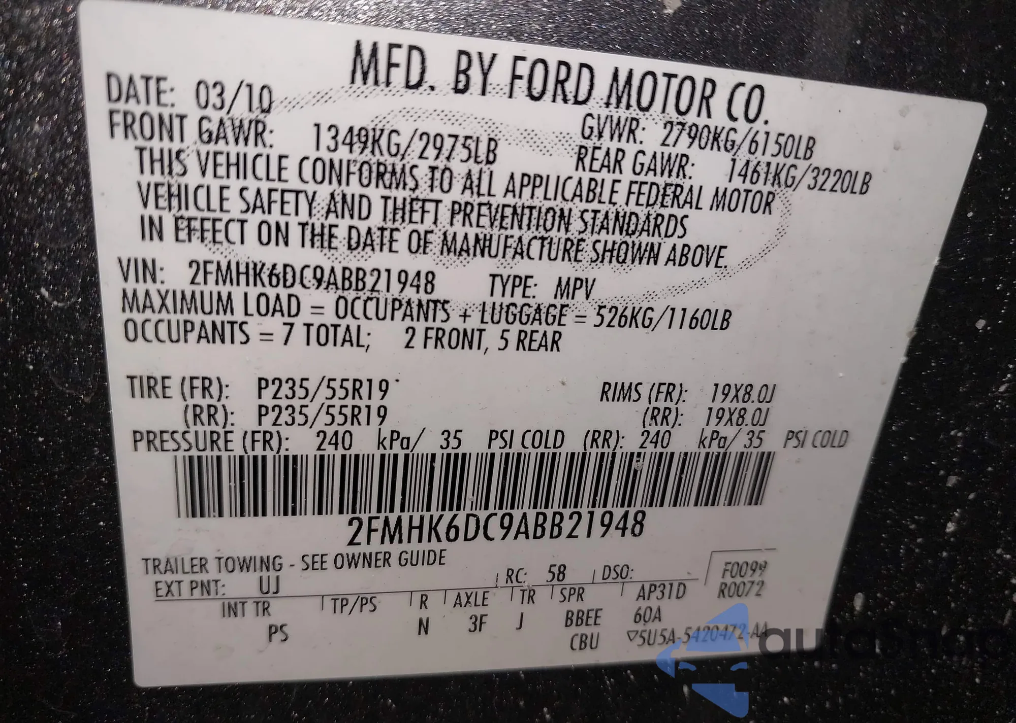 • VIN: 2FMHK6DC9ABB21948