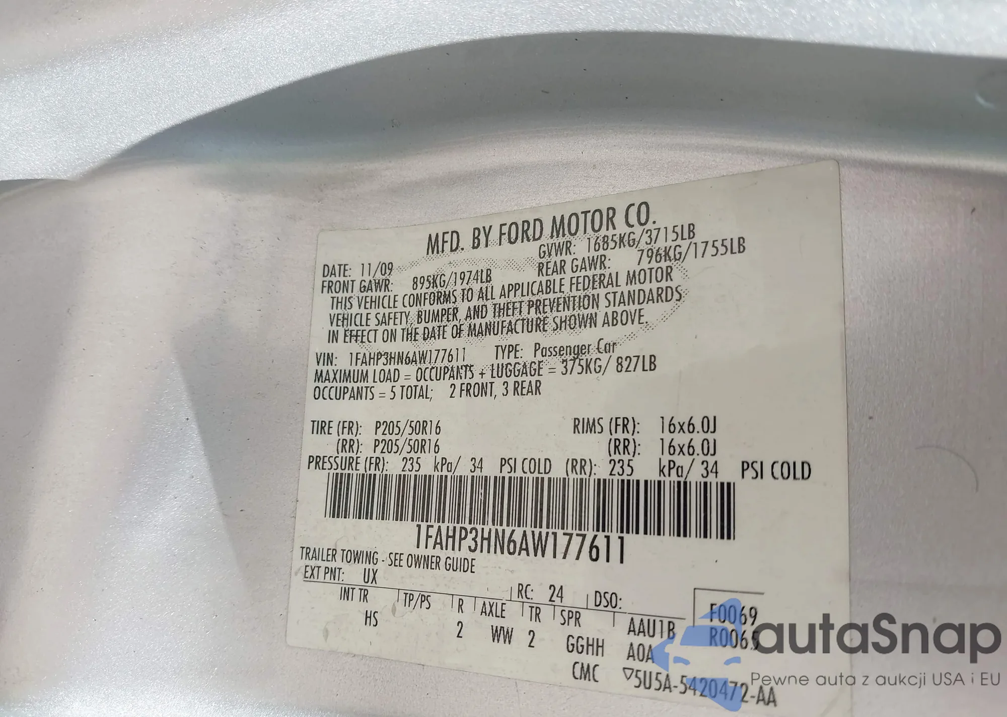 VIN: 1FAHP3HN6AW177611