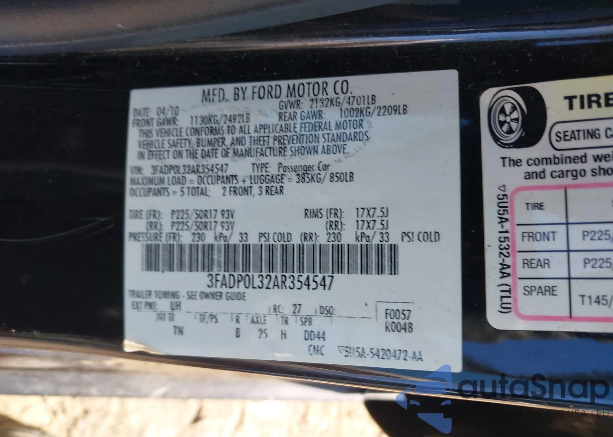 VIN: 3FADP0L32AR354547