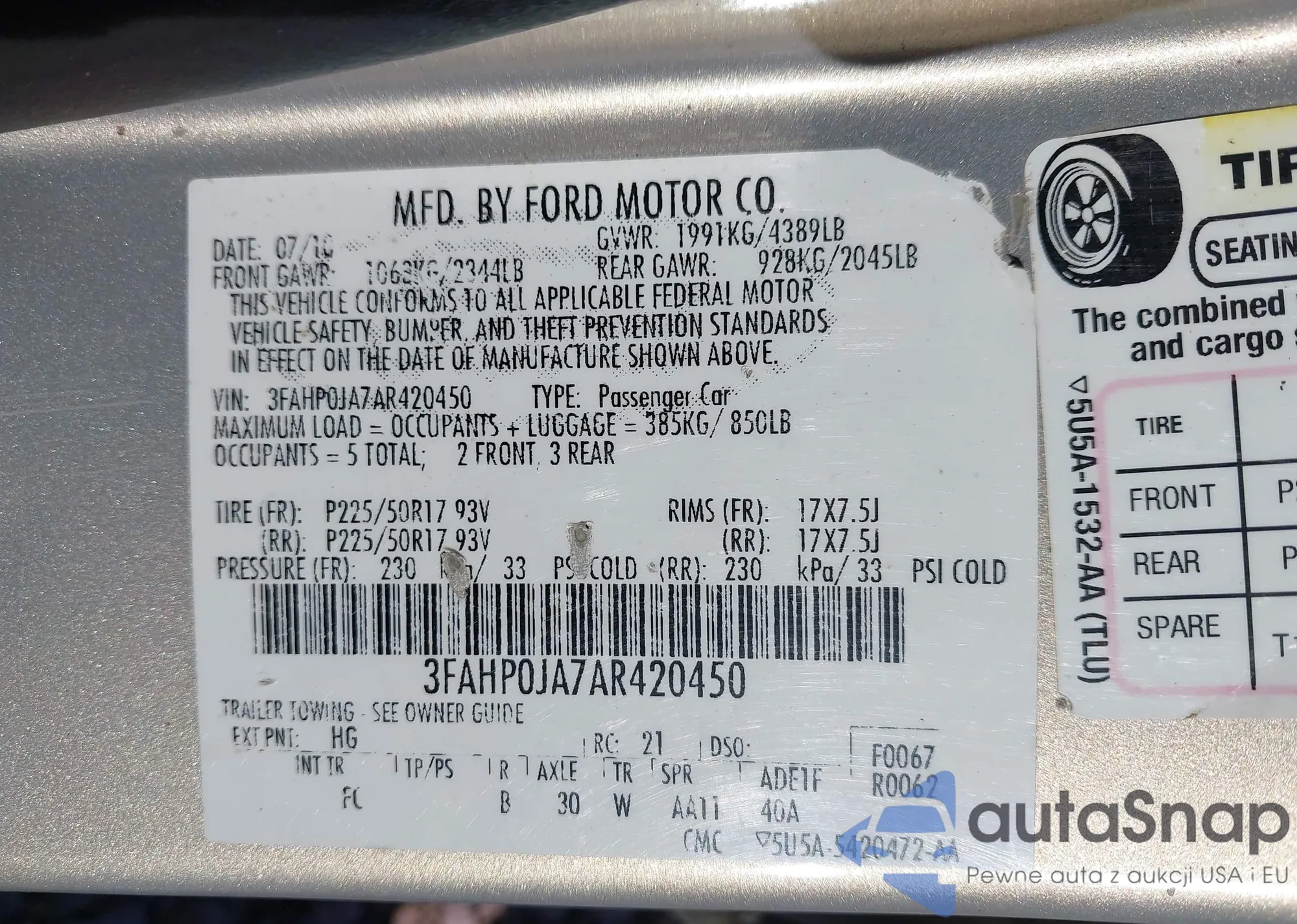 VIN: 3FAHP0JA7AR420450