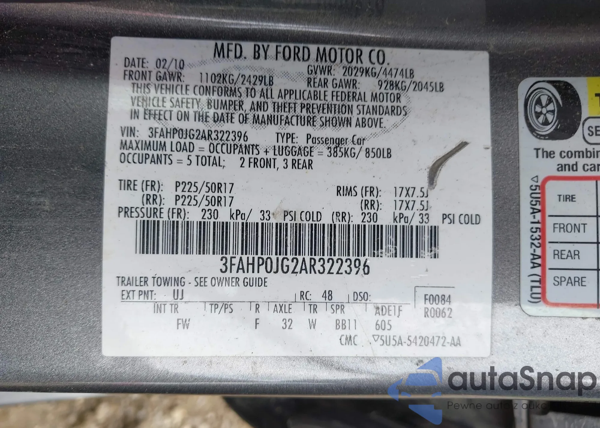 VIN: 3FAHP0JG2AR322396
