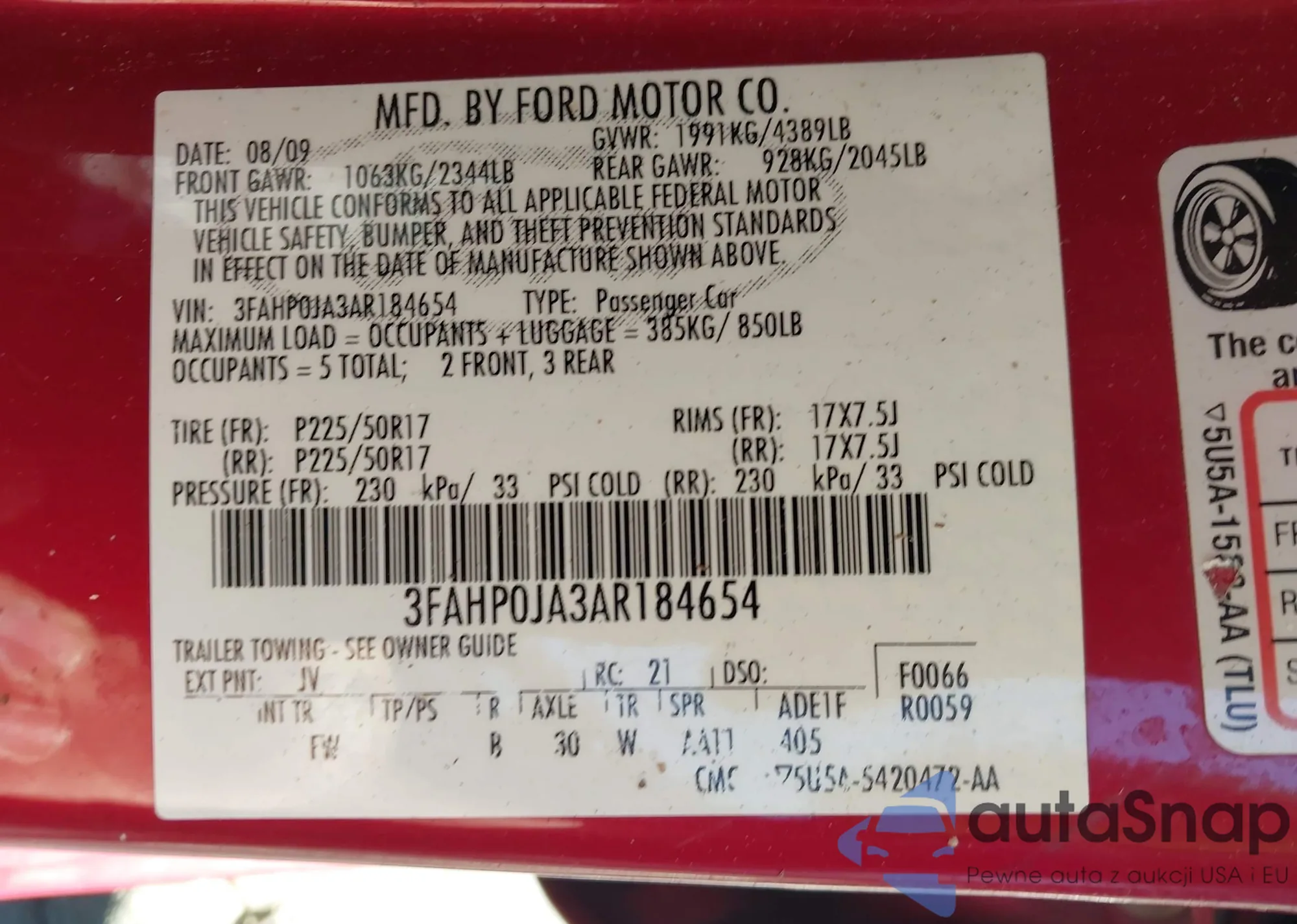 Автомобиль Ford Fusion 2010 (VIN 3FAHP0JA3AR184654) ранее не участвовал в торгах. Документы чистые, пробег соответствует или ниже среднего по рынку. Продаётся страховой компанией — рекомендуем покупку. Доставка в порт займет около 6–8 недель.