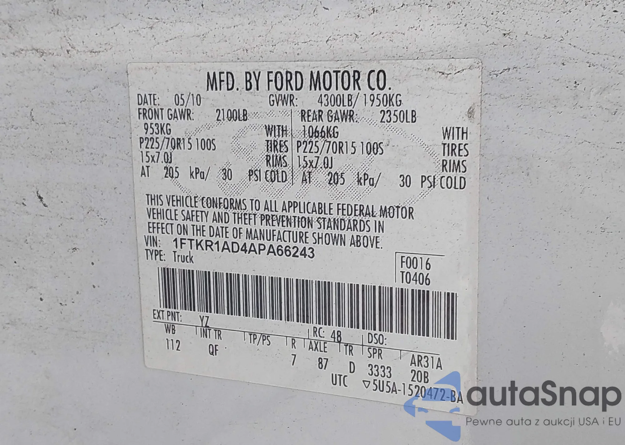 VIN: 1FTKR1AD4APA66243