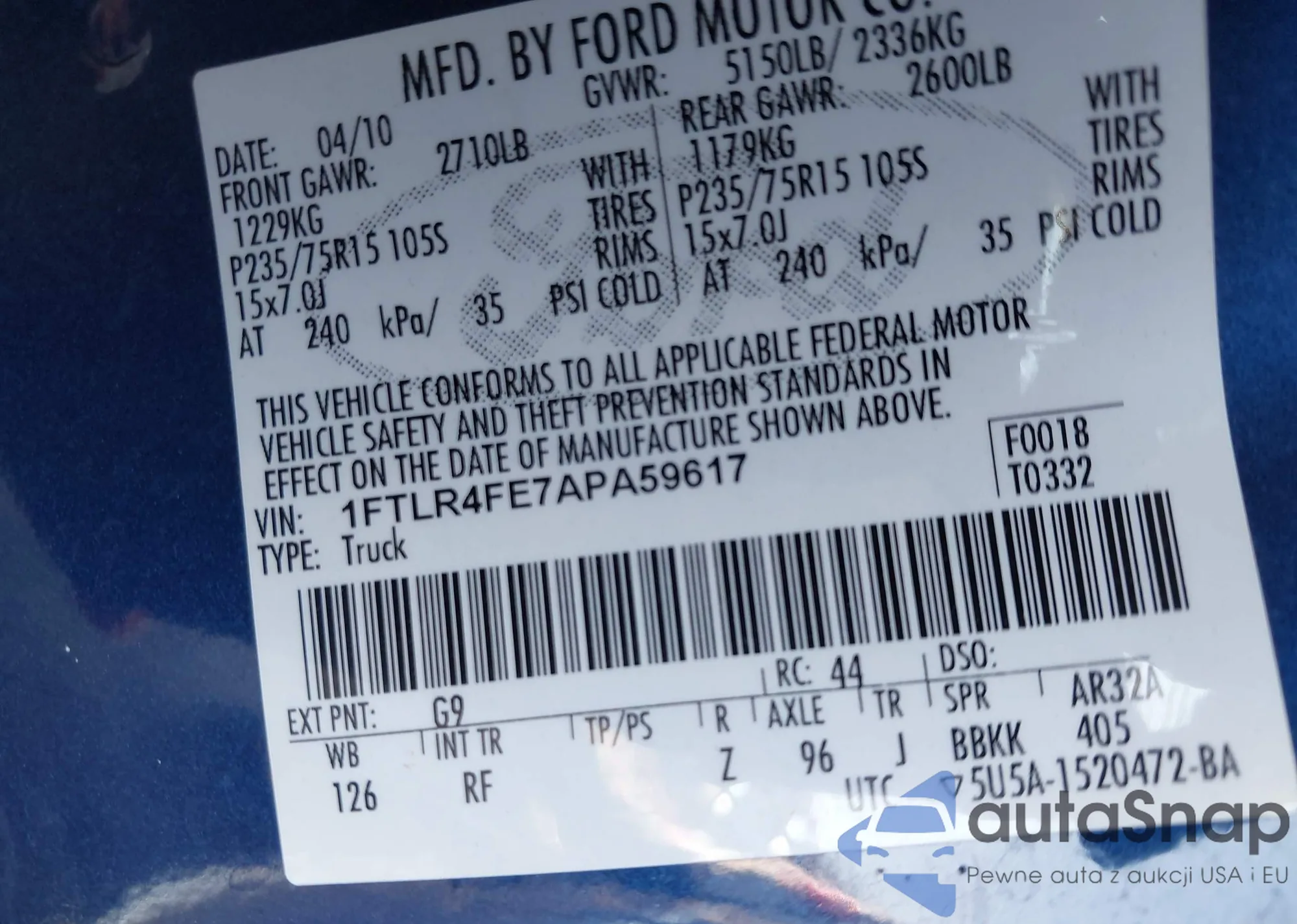VIN: 1FTLR4FE7APA59617