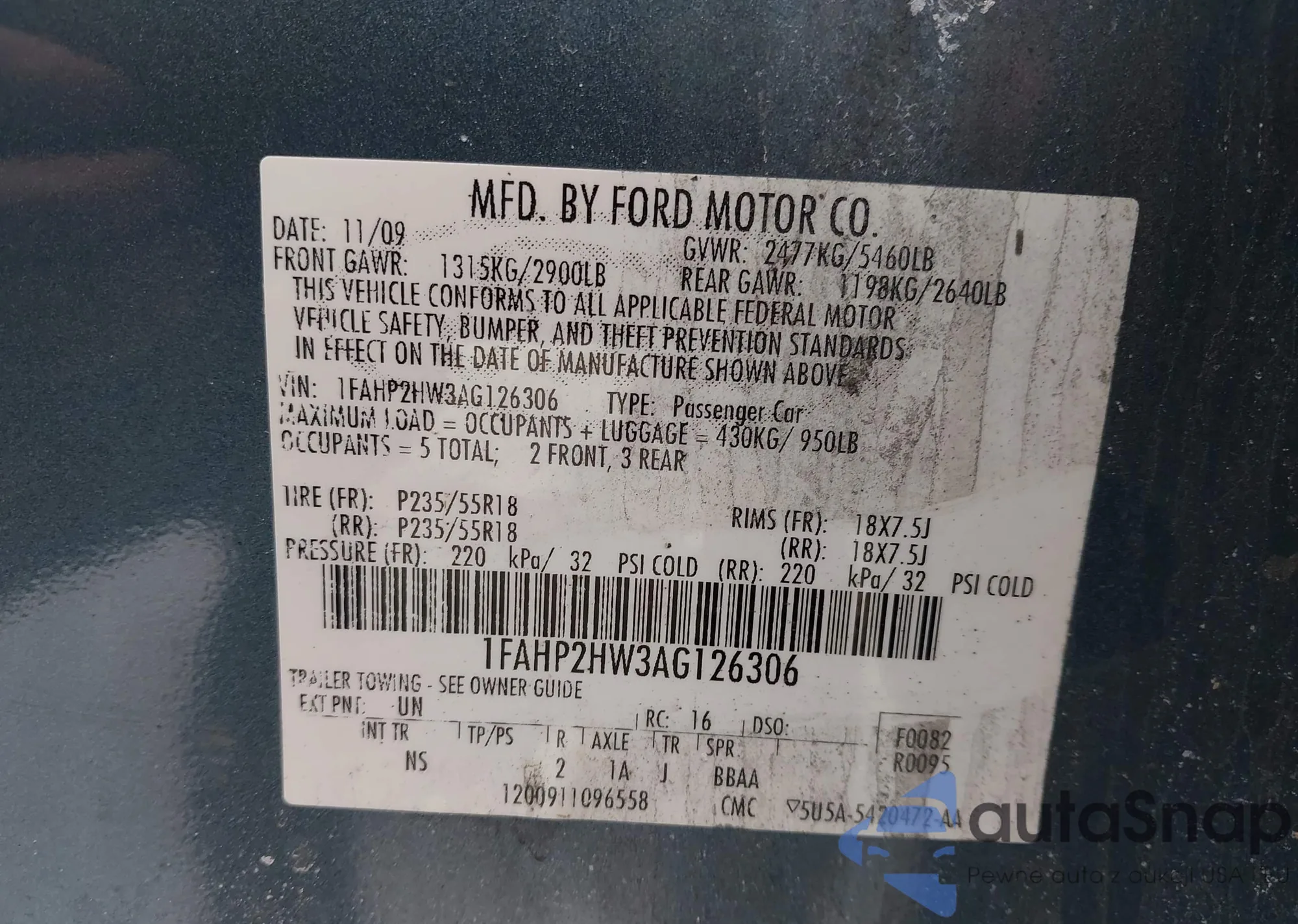 Автомобиль Ford Taurus 2010 (VIN 1FAHP2HW3AG126306) ранее не участвовал в торгах. Документы чистые, пробег соответствует или ниже среднего по рынку. Продаётся страховой компанией — рекомендуем покупку. Доставка в порт займет около 6–8 недель.