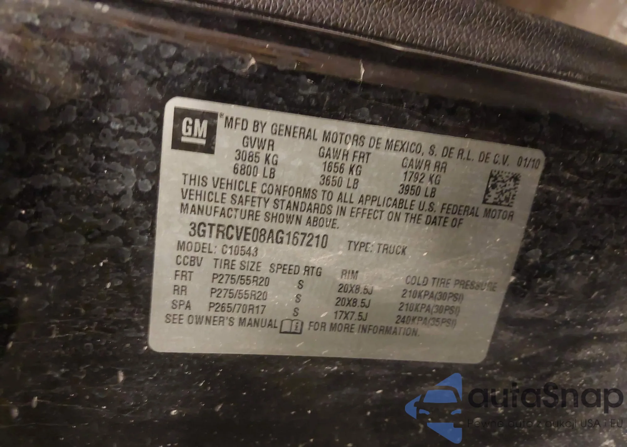 VIN: 3GTRCVE08AG167210