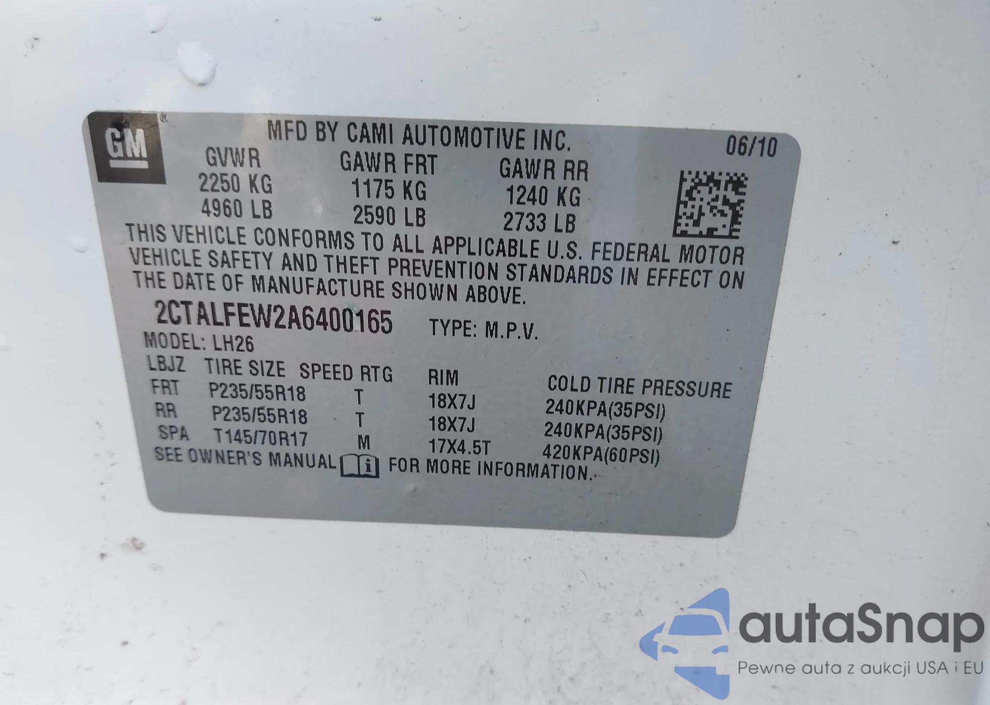 VIN: 2CTALFEW2A6400165
