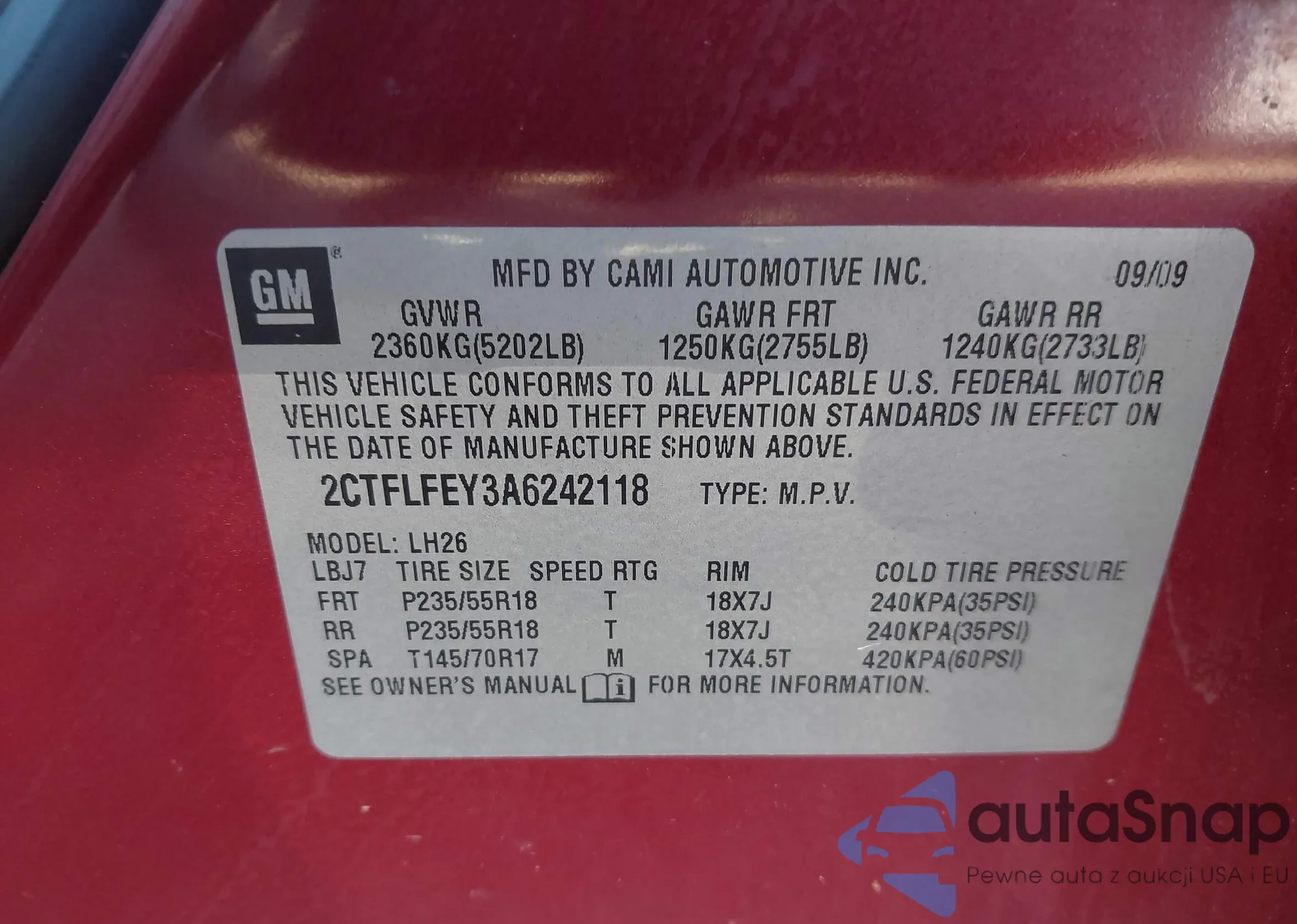 VIN: 2CTFLFEY3A6242118