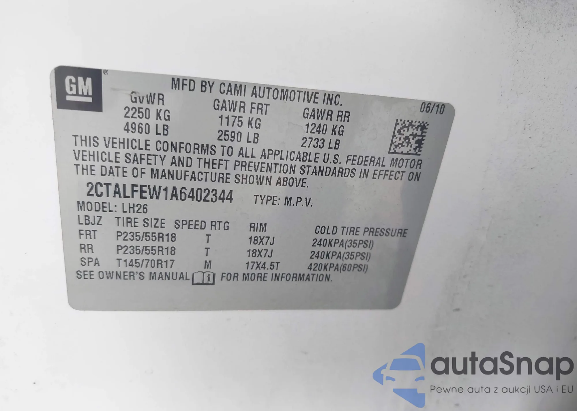 • VIN: 2CTALFEW1A602344