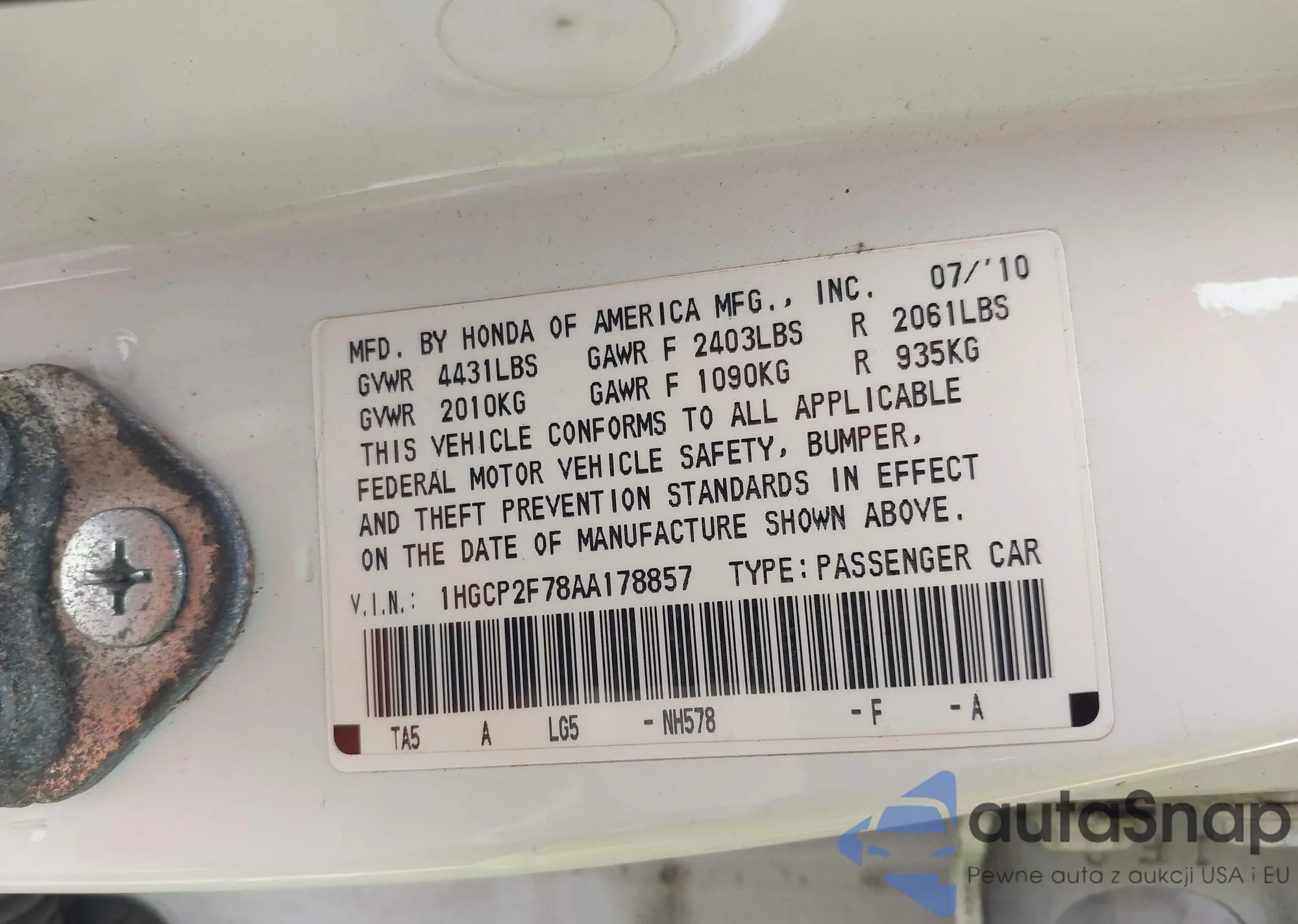 VIN: 1HGCP2F78AA178857