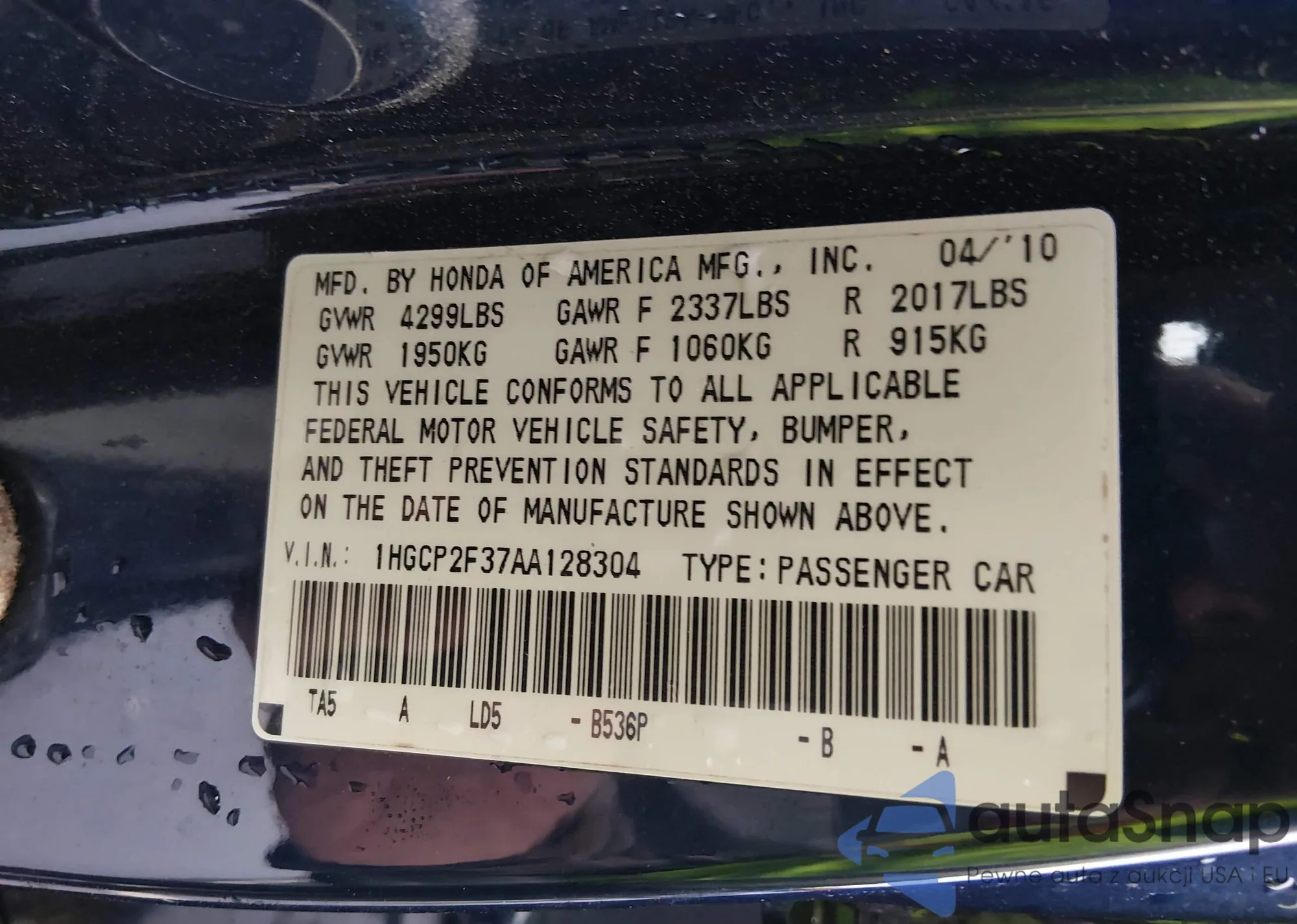 VIN: 1HGCP2F37AA128304