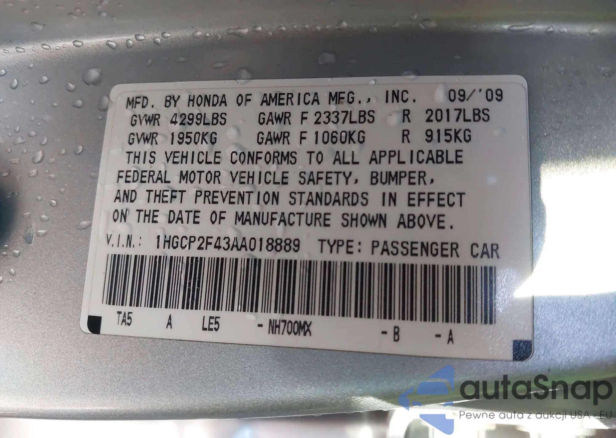 Автомобиль Honda Accord 2010 (VIN 1HGCP2F43AA018889) ранее не участвовал в торгах. Документы чистые, пробег соответствует или ниже среднего по рынку. Продаётся страховой компанией — рекомендуем покупку. Доставка в порт займет около 6–8 недель.