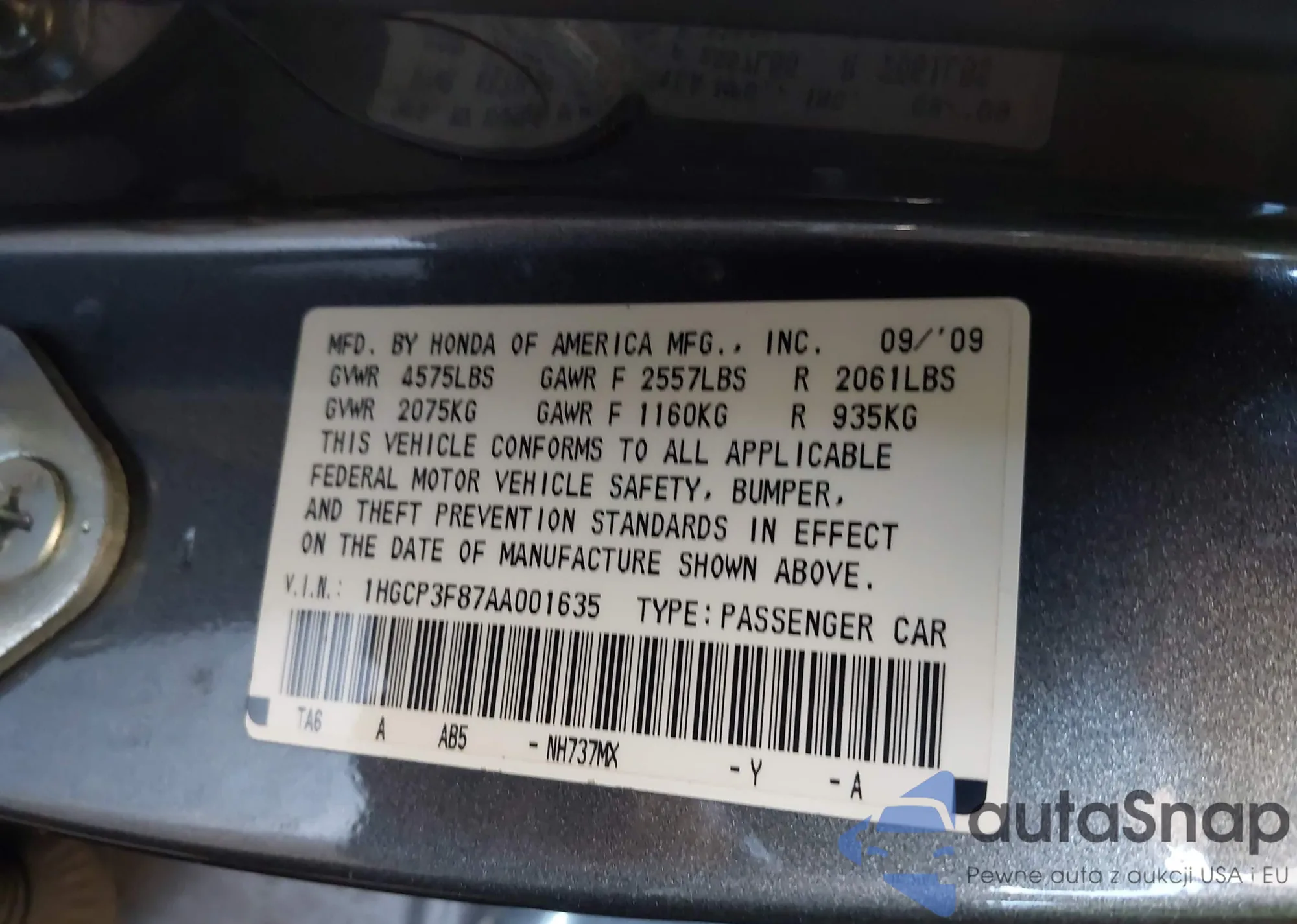 VIN: 1HGCP3F87AA001635
