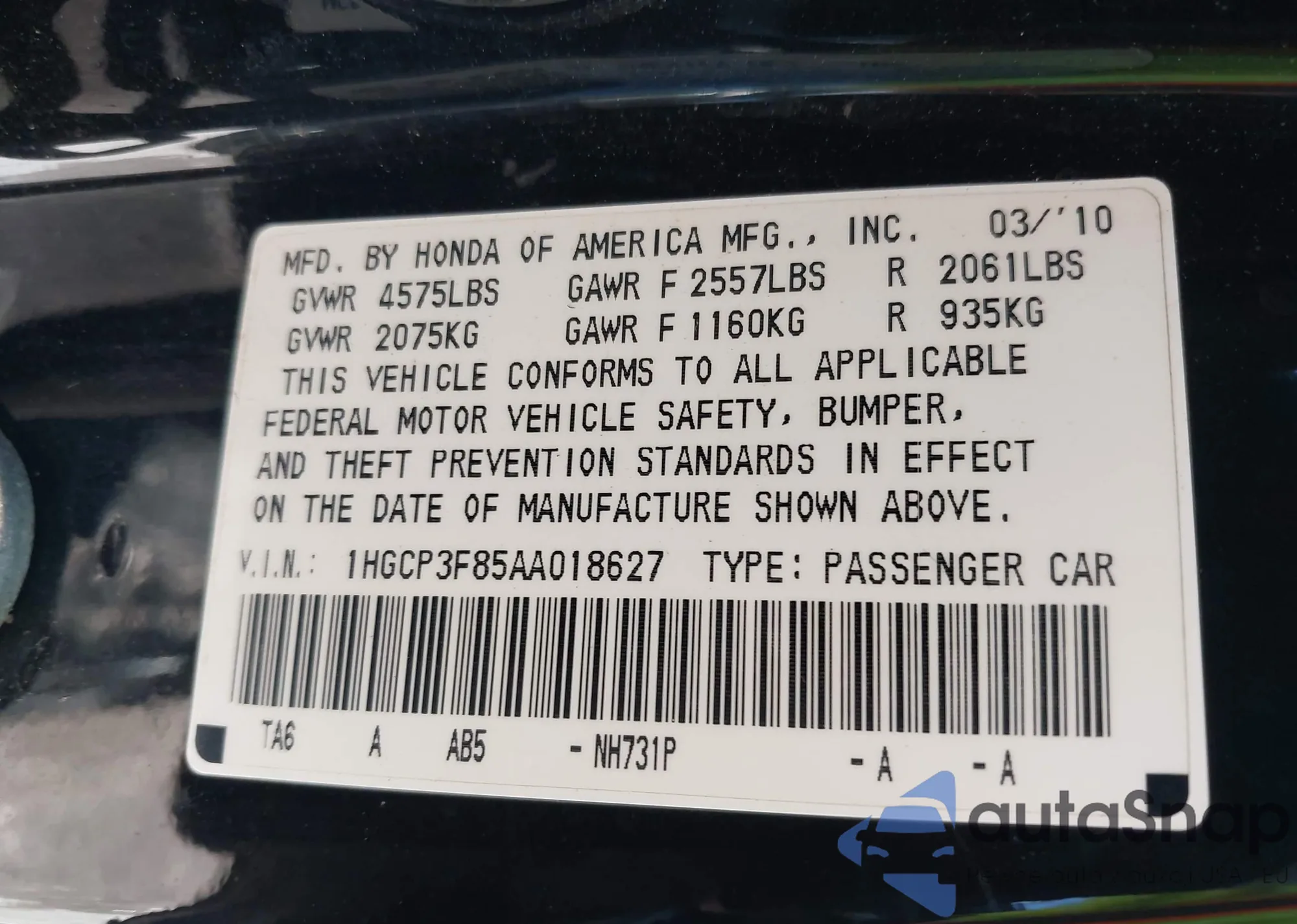 VIN: 1HGCP3F85AA018627