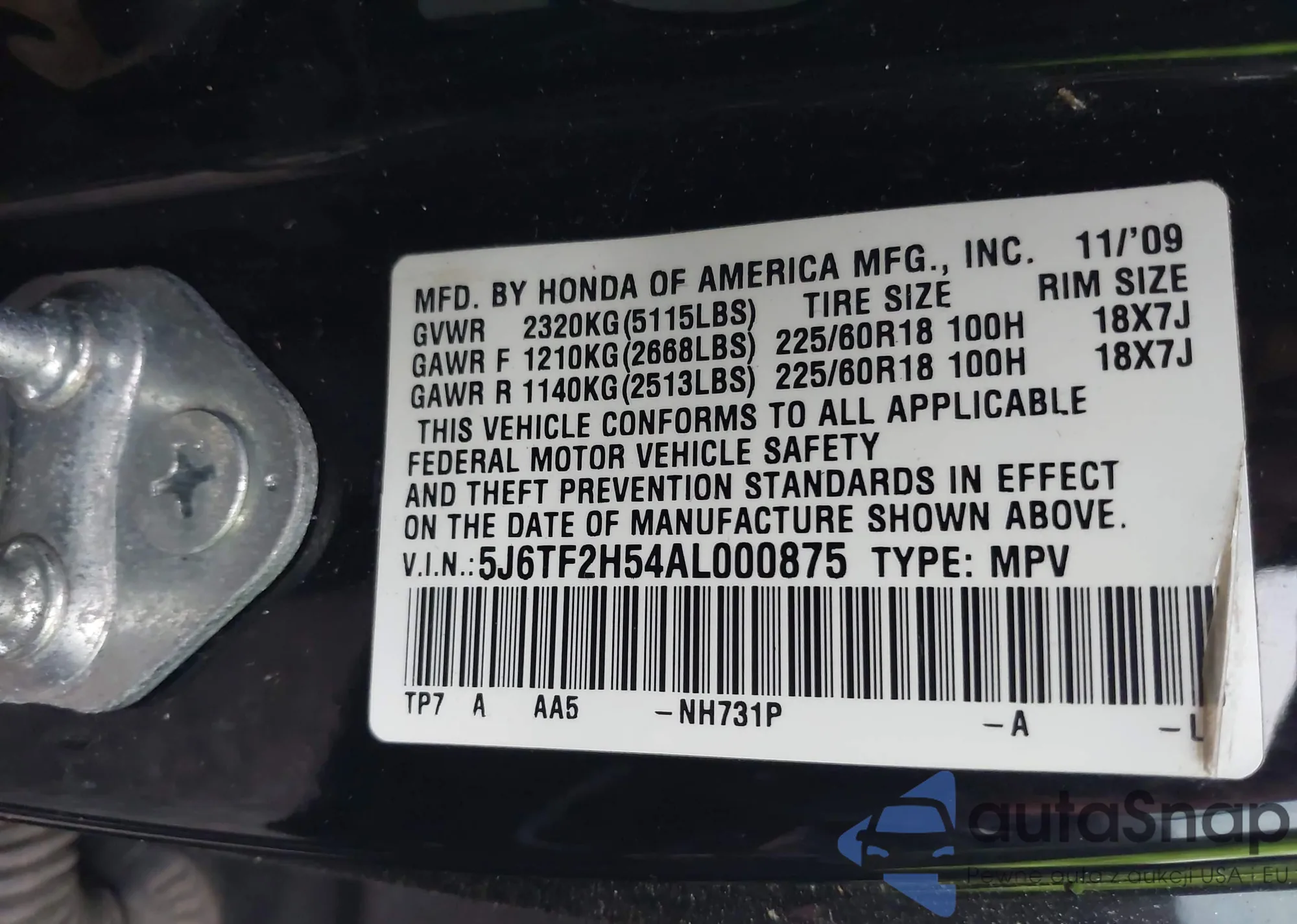 VIN: 5J6TF2H54AL000875