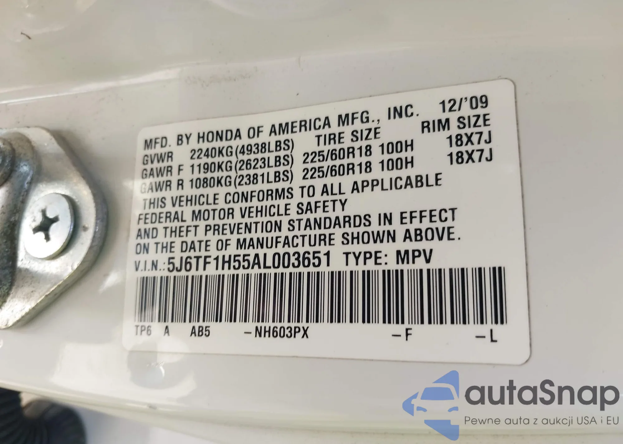 VIN: 5J6TF1H55AL003651