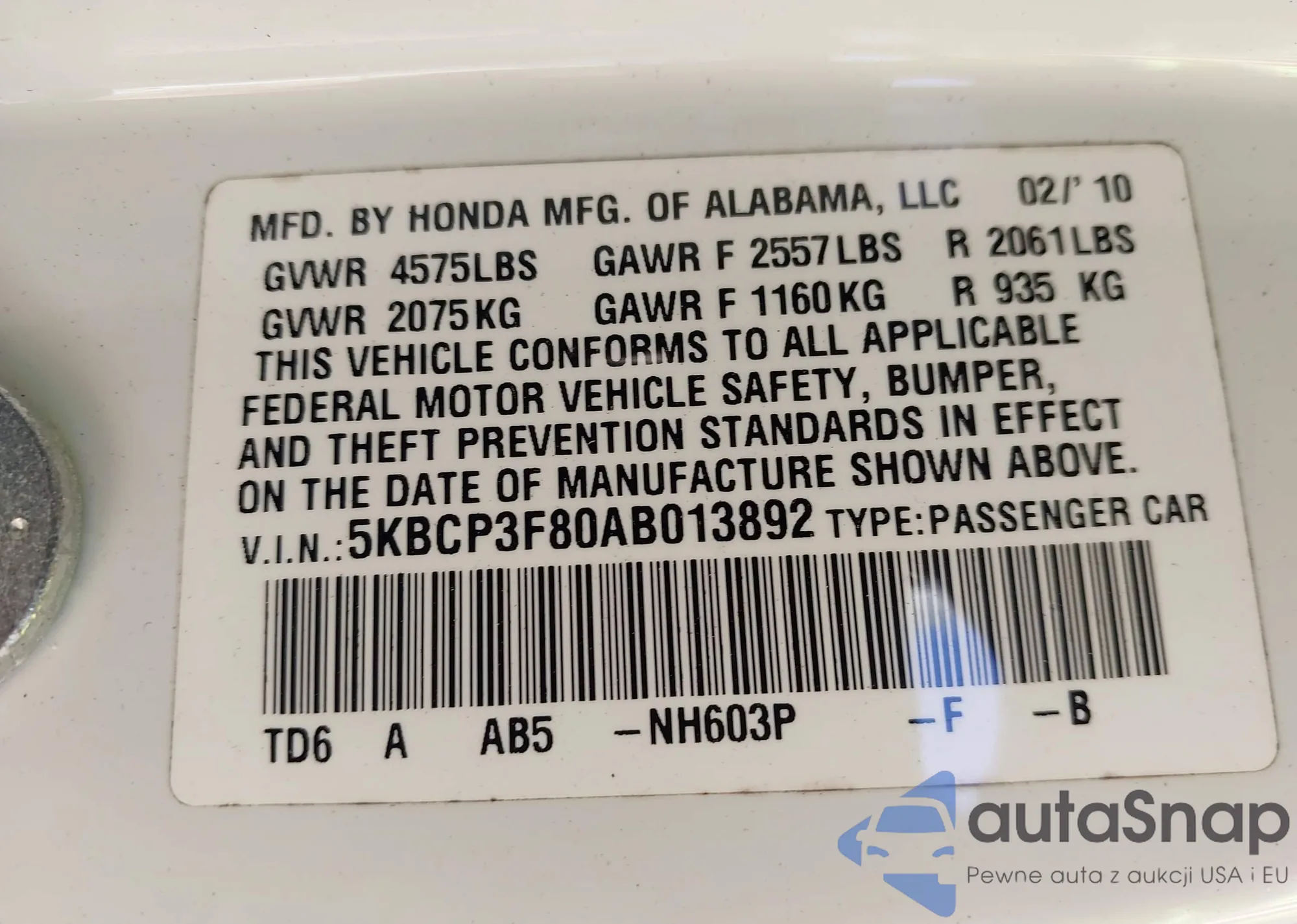VIN: 5KBCP3F80AB013892