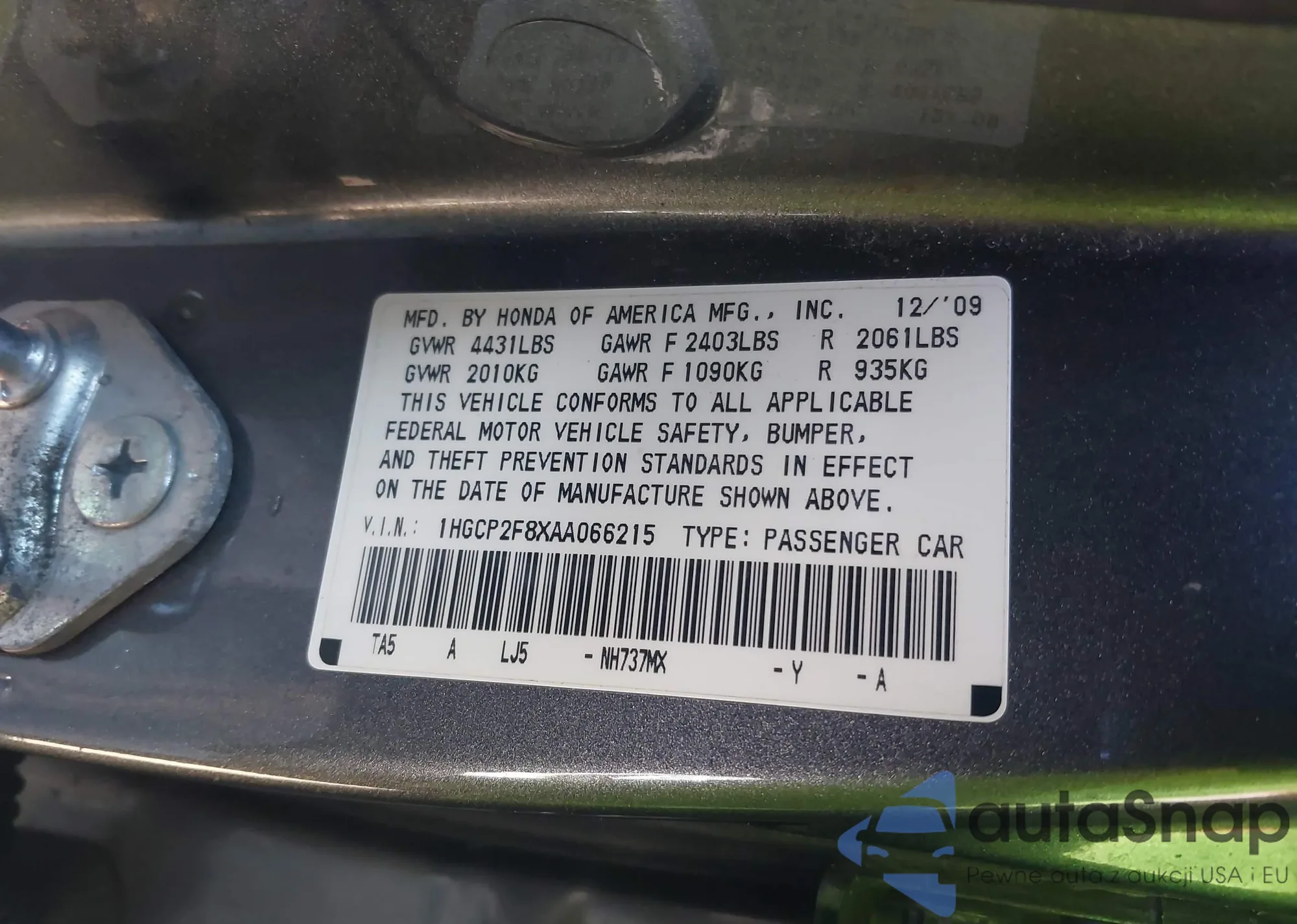 VIN: 1HGCP2F8XAA066215
