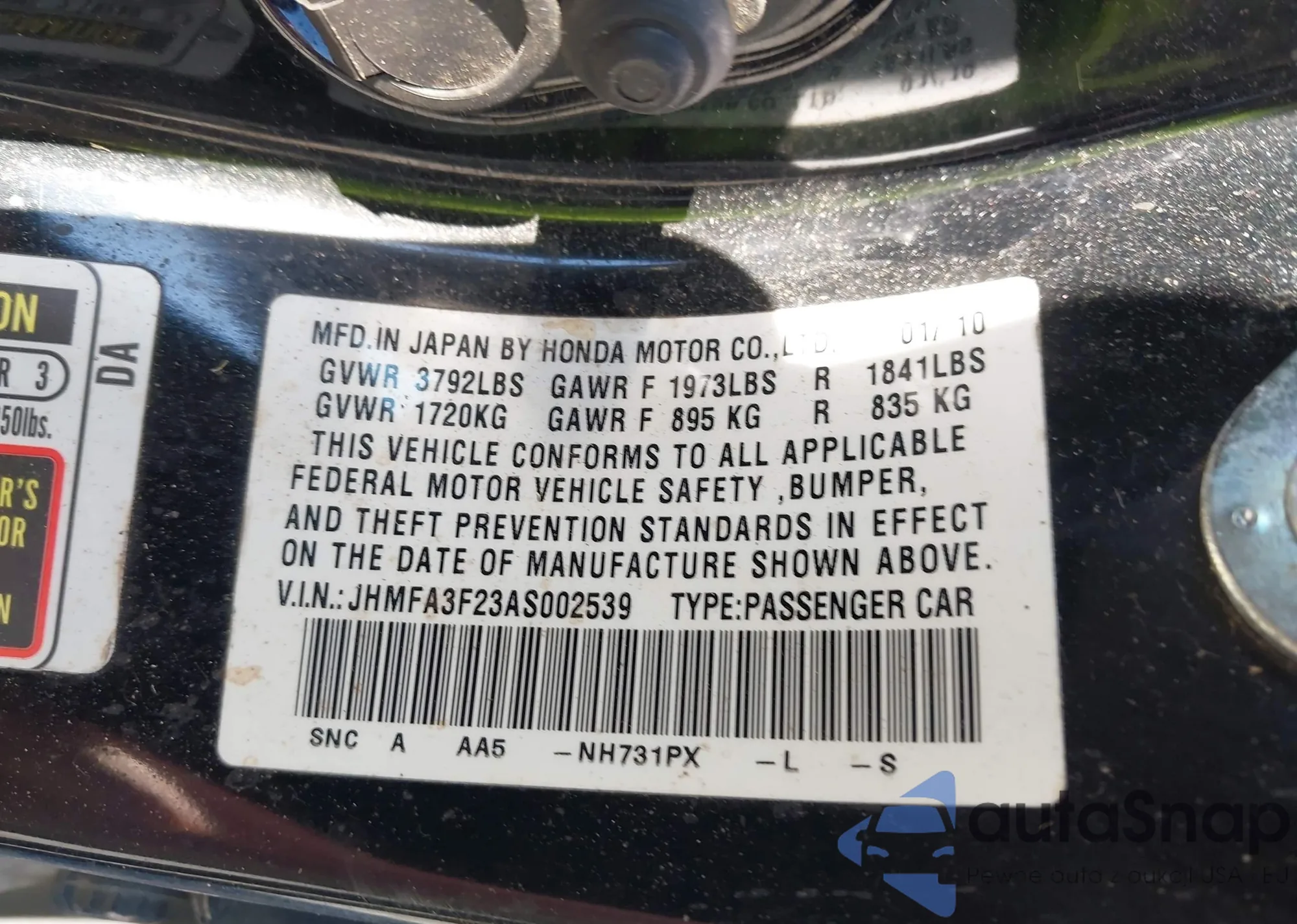 VIN: JHMFA3F23AS002539