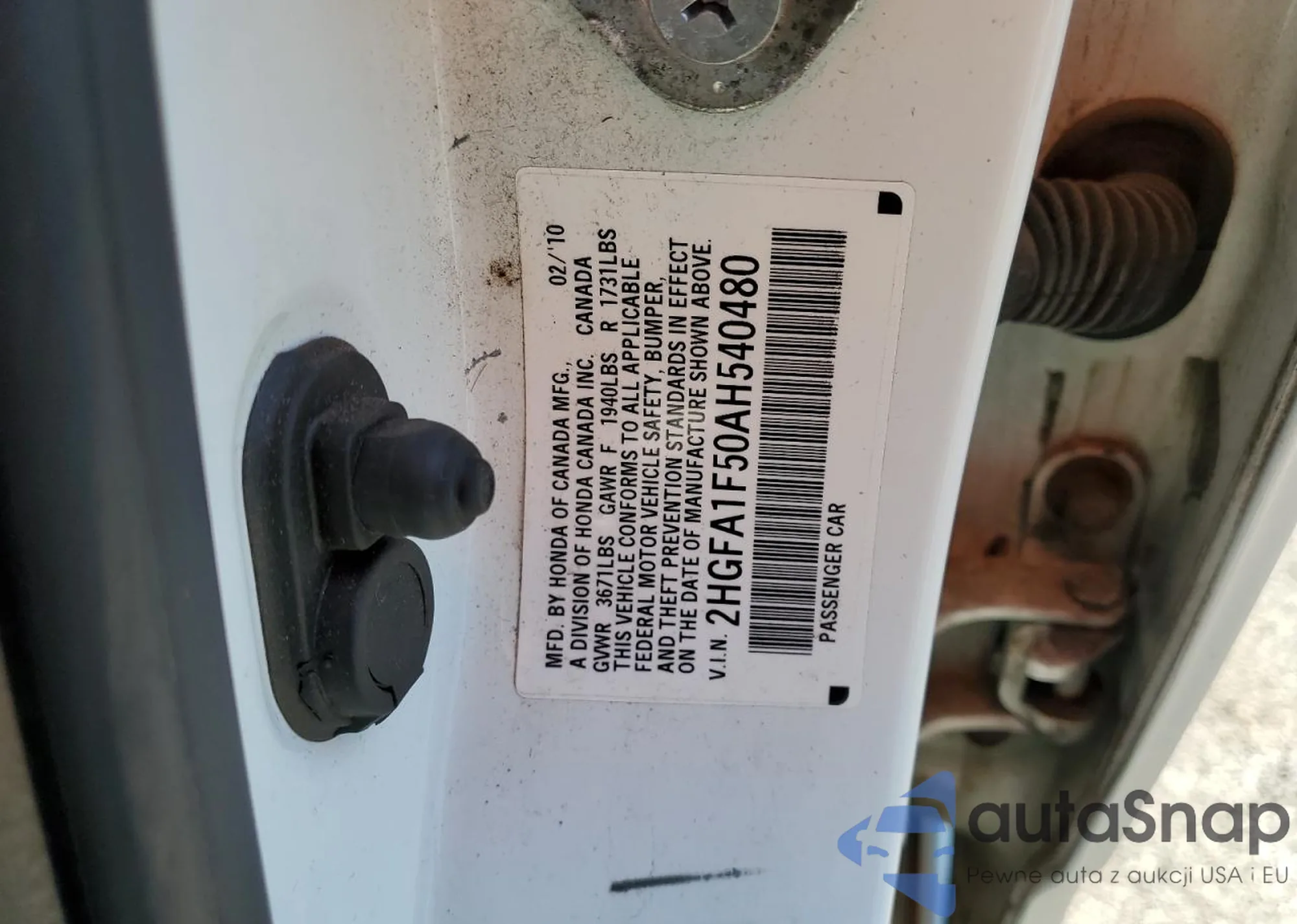 VIN: 2HGFA1F50AH540480