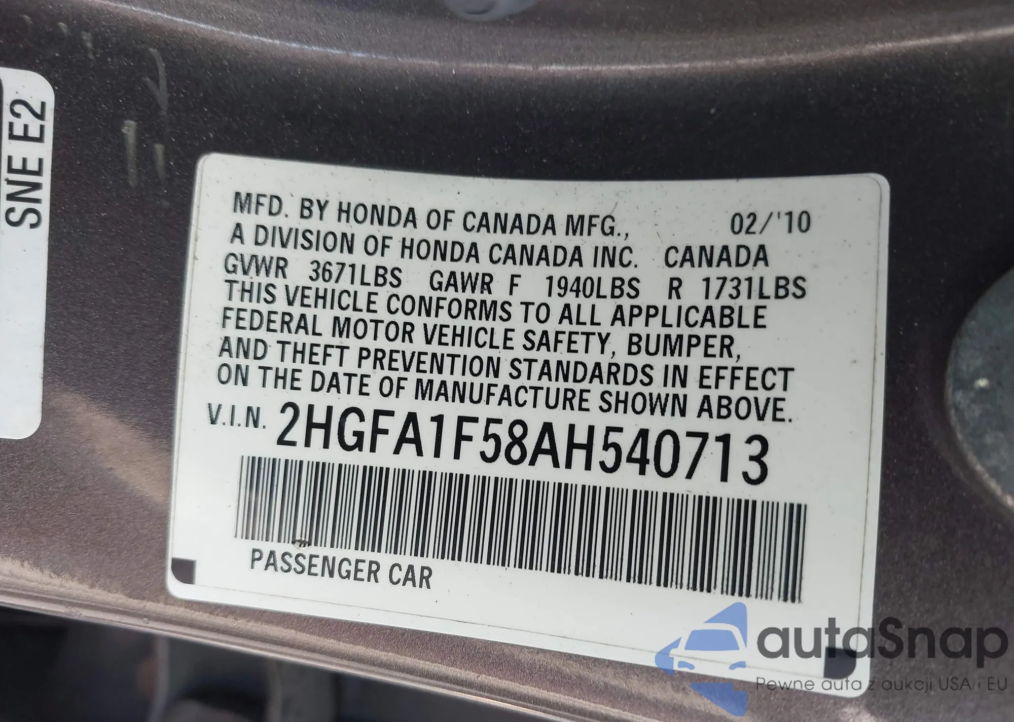 VIN: 2HGFA1F58AH540713