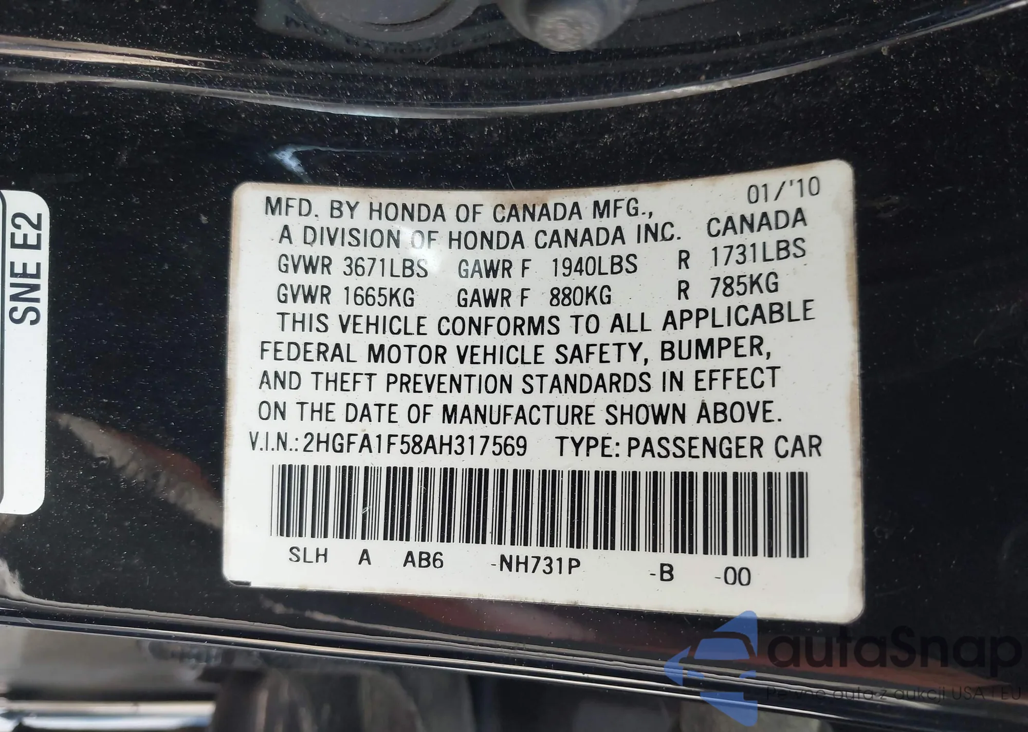 VIN: 2HGFA1F58AH317569