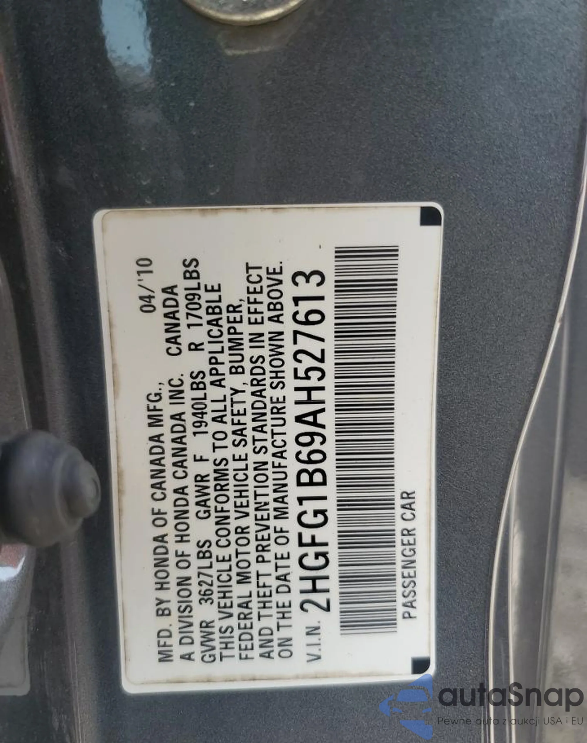 VIN: 2HGFG1B69AH527613