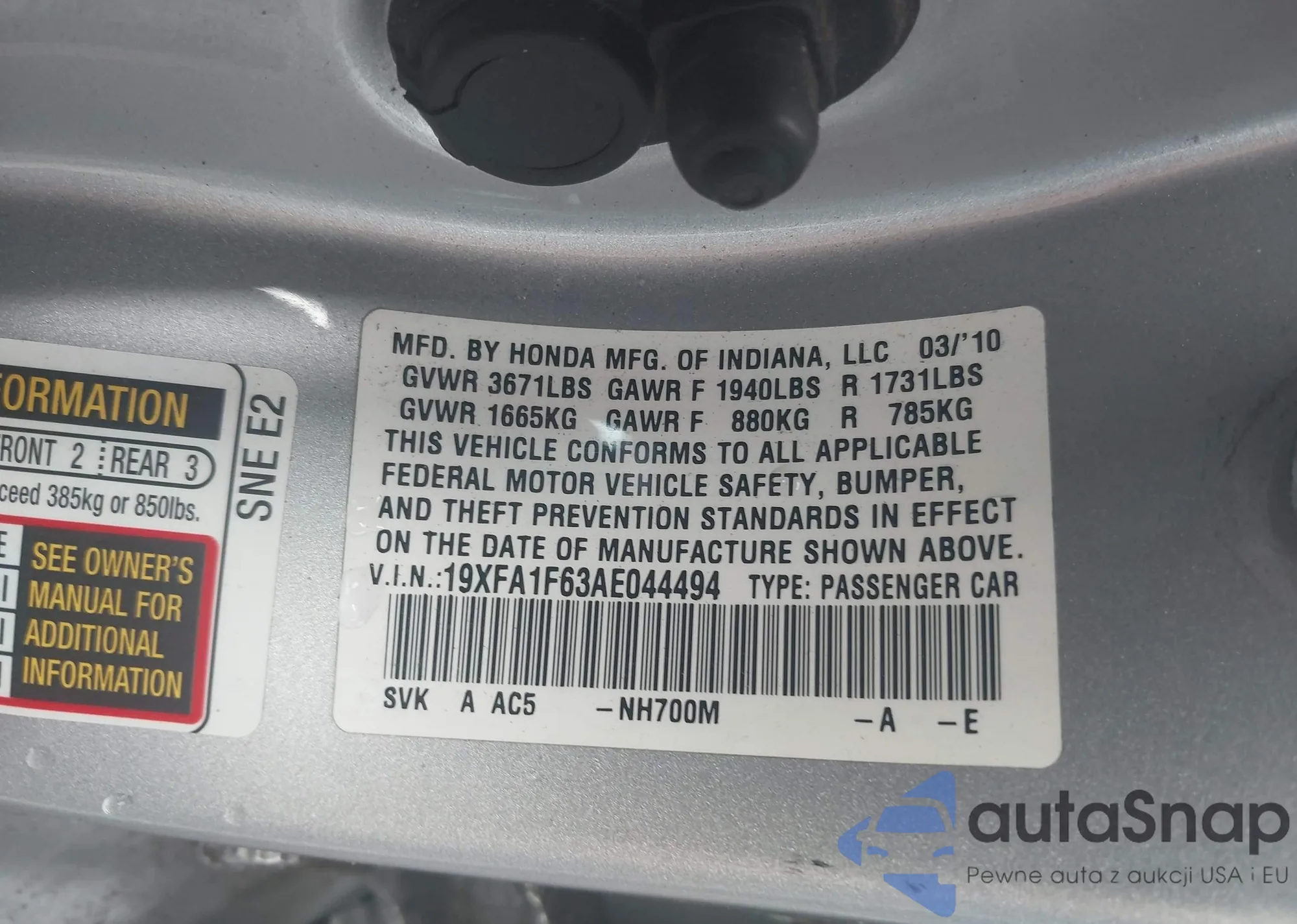 VIN: 19XFA1F63AE044494