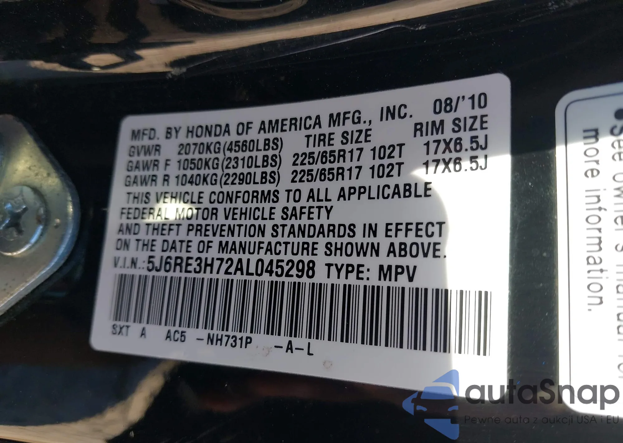 VIN: 5J6RE3H72AL045298