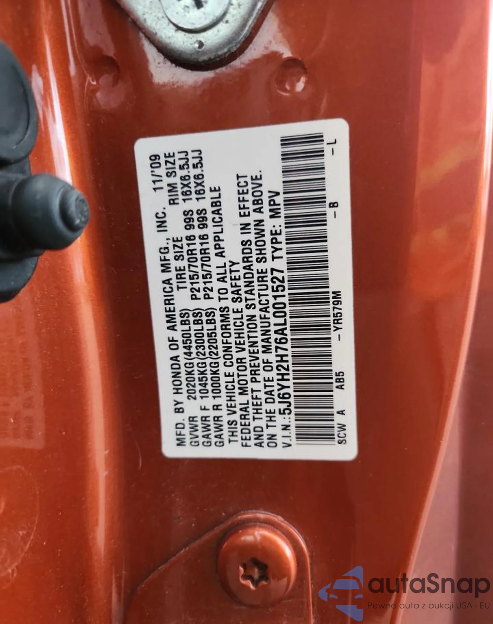 VIN: 5J6YH2H76AL001527
