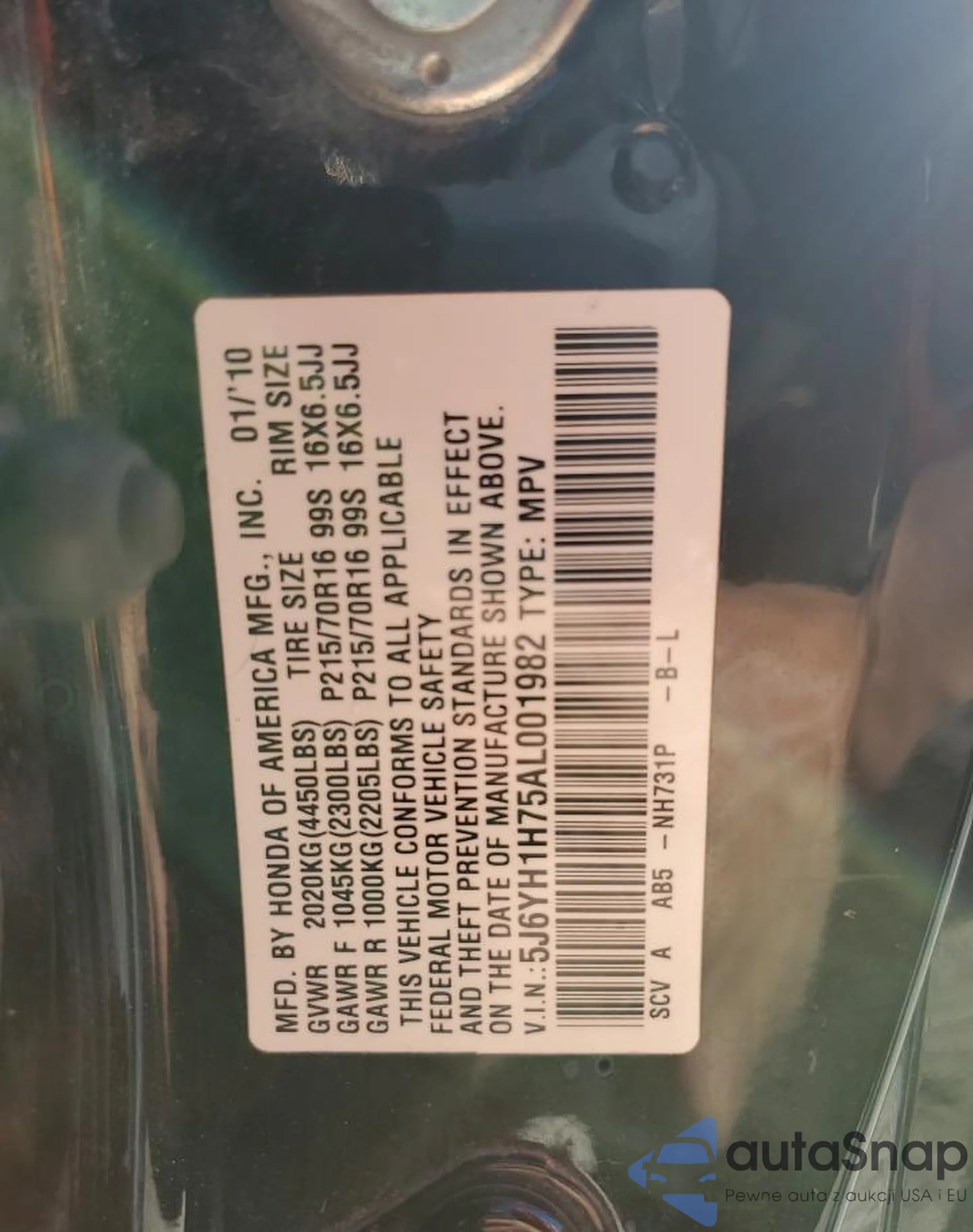 Автомобиль Honda Element 2010 (VIN 5J6YH1H75AL001982) ранее не участвовал в торгах. Документы чистые, пробег соответствует или ниже среднего по рынку. Продаётся страховой компанией — рекомендуем покупку. Доставка в порт займет около 6–8 недель.