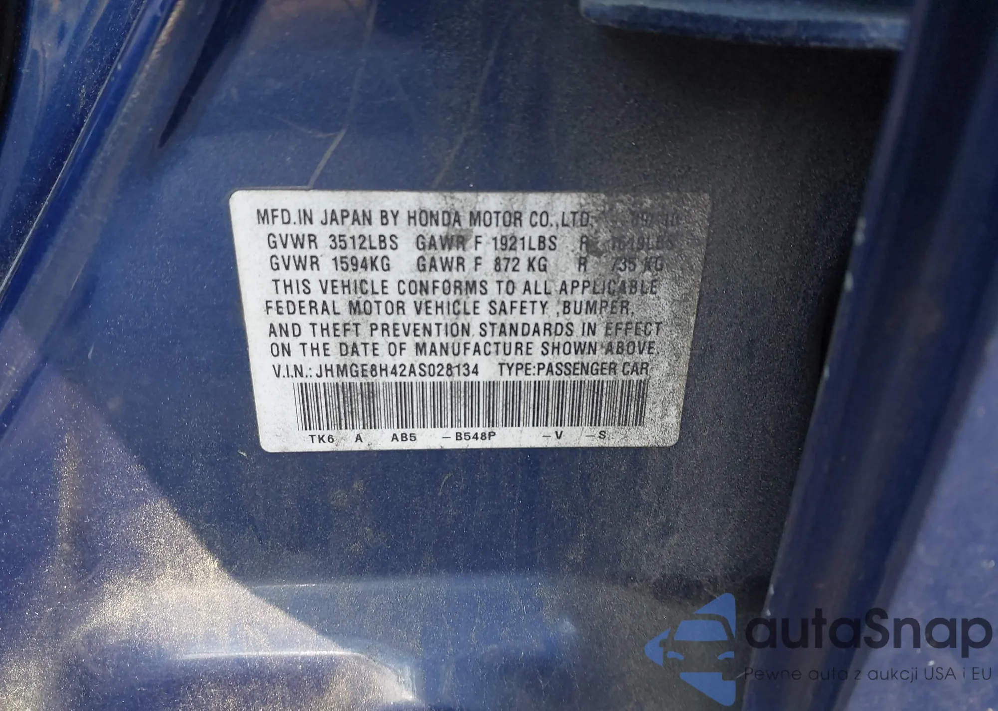 • VIN: JHMGE8H42AS028134